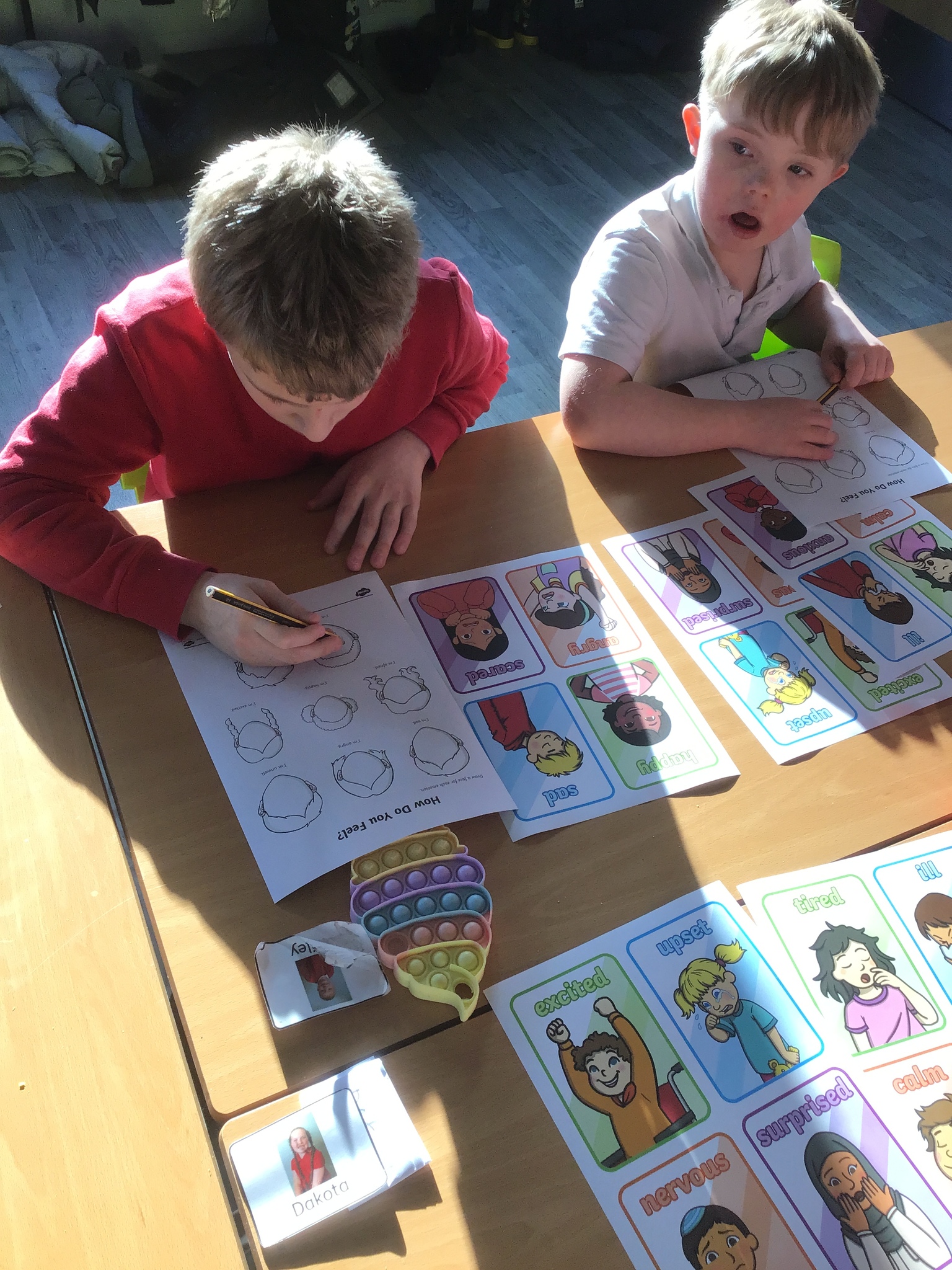 We looked at all our different feelings and emotions and recognised how people may look or act if they are feeling certain ways.