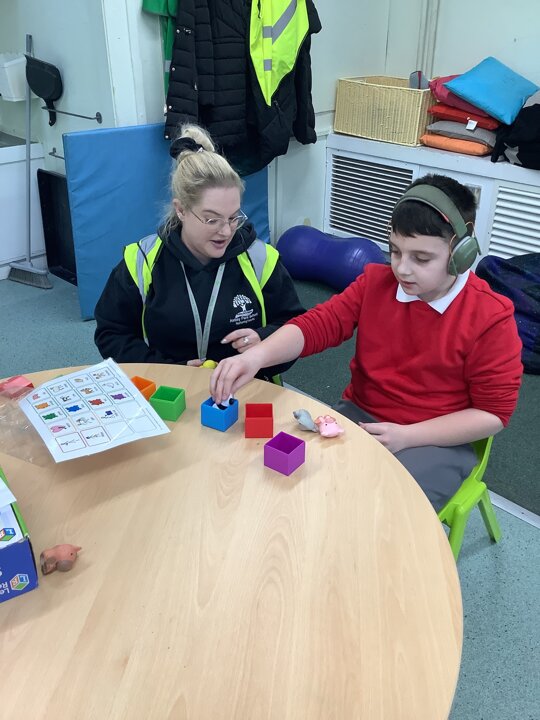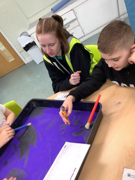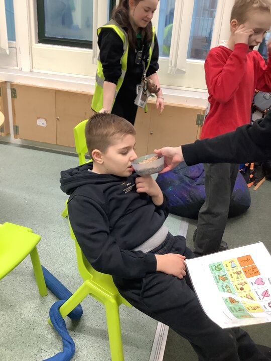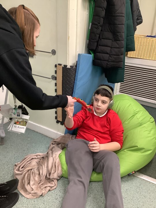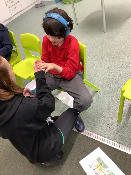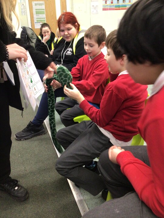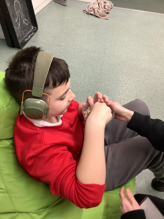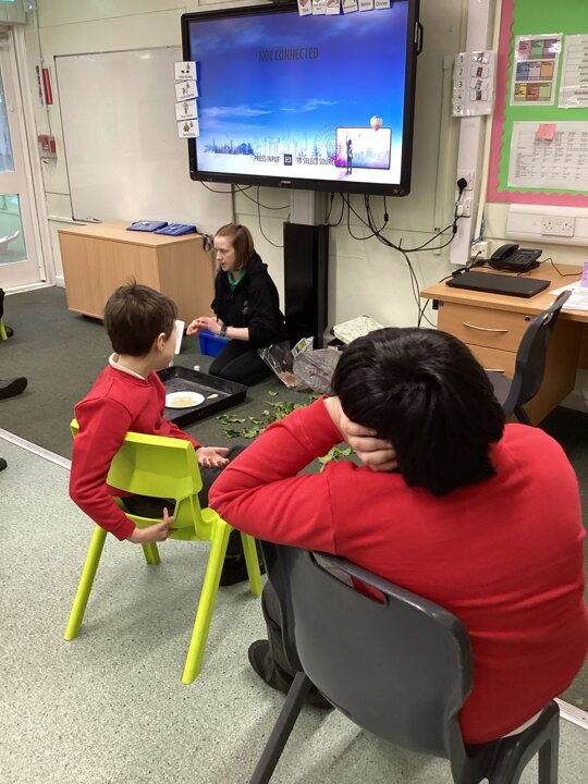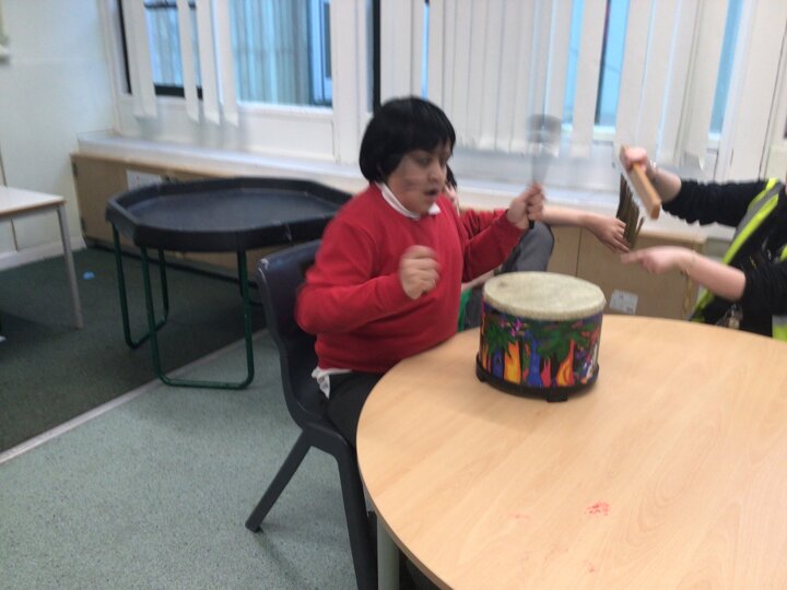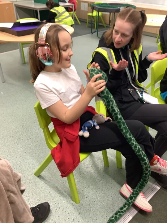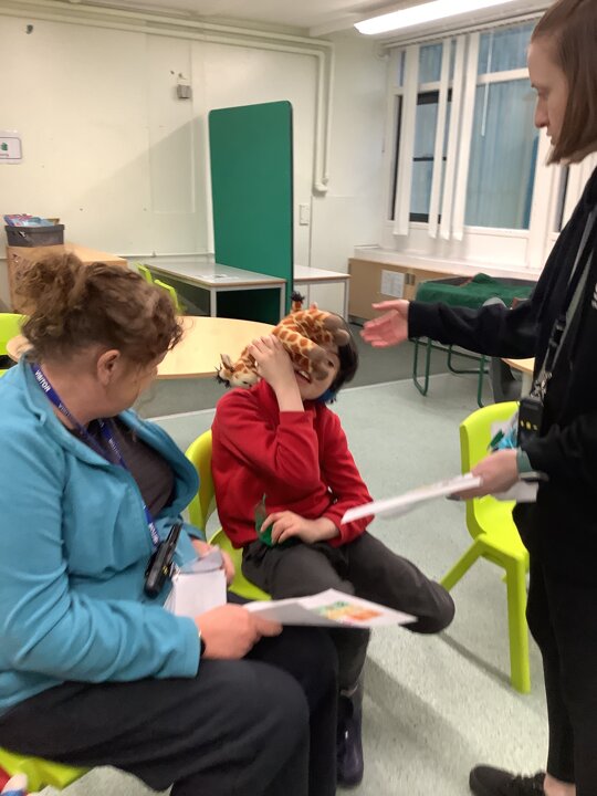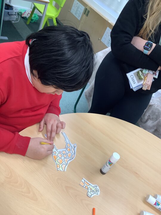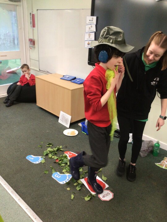 This week we have been super busy in Rowan class. On Monday morning we have done Attention Autism about numbers, counting how many footprints we could find in the jungle leaves. Then in the afternoon we have been making monkey faces. On Tuesday, in the morning we have done PE, we have been exploring movement like different animals do, then we have been doing our zoo themed sensology where we have been using our senses to explore different zoo themed activities which included smelling bird food, listening to the monkey sounds and touching the fur of the giraffe soft toy. On Tuesday afternoon, we have learning about the winter weather and used the umbrella to protect us from the ‘rain’ in class before making rain cloud pictures at the table. On Wednesday we have been learning about going to the zoo in our Dear Zoo sensory story, where we pretended to be the zoo animals and listened to their sounds. In the afternoon, we did a ‘5 speckled frog’ themed Attention Autism where we sang the song and had a turn making the frogs jump into the pond, before making our very own frog faces. On Thursday, we did a zoo themed Attention Autism where we learnt about tall giraffes and their long necks, making tall towers to represent a giraffe’s long neck. Then at the table we made our own giraffes with long necks. On Thursday afternoon we had a relaxing time in the sensory room. On Friday morning we have been exploring our senses again, this time during a winter themed sensology lesson where we smelt pine trees, tasted hot chocolate and felt the cold ice cubes. Then this afternoon we have been exploring musical instruments during a musical sensory lesson. We have also done lots of regulation throughout the week with track walks, sensory room and sensory integration room sessions and phonics lessons. What a super fun and busy week in Rowan Class!!