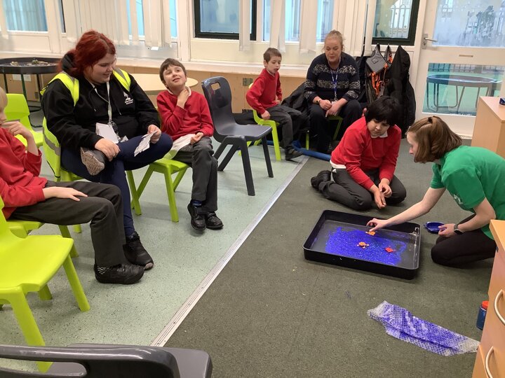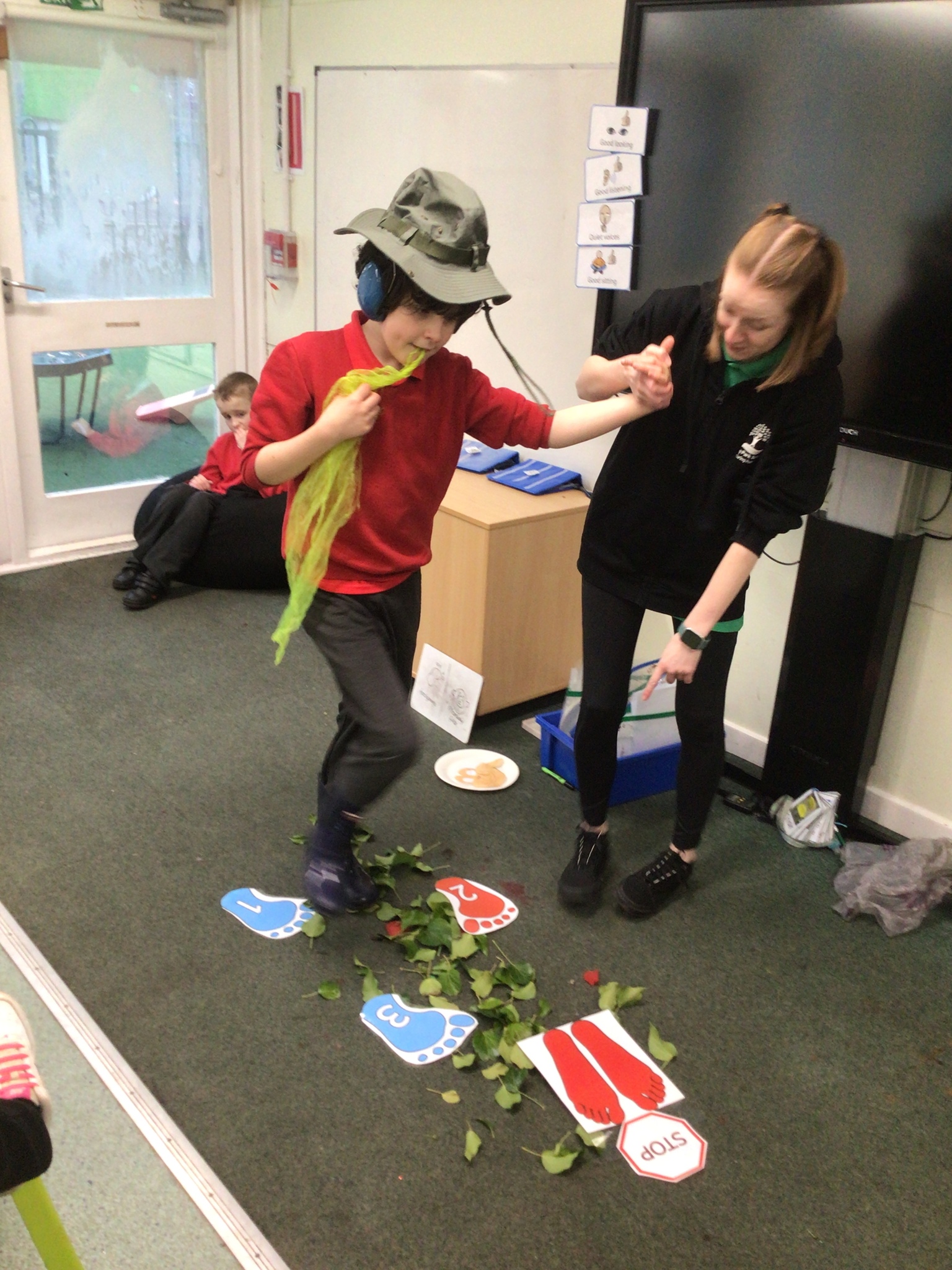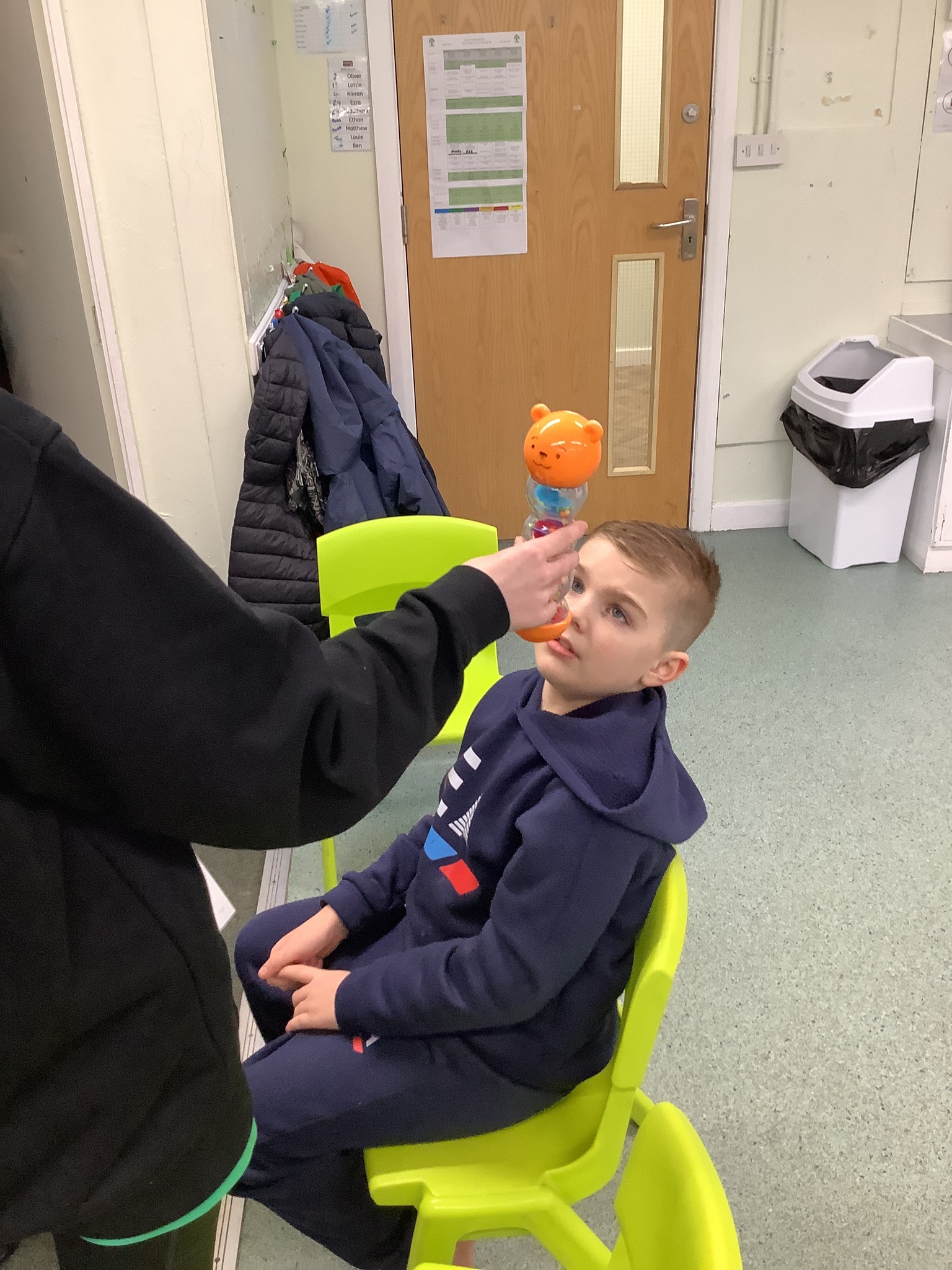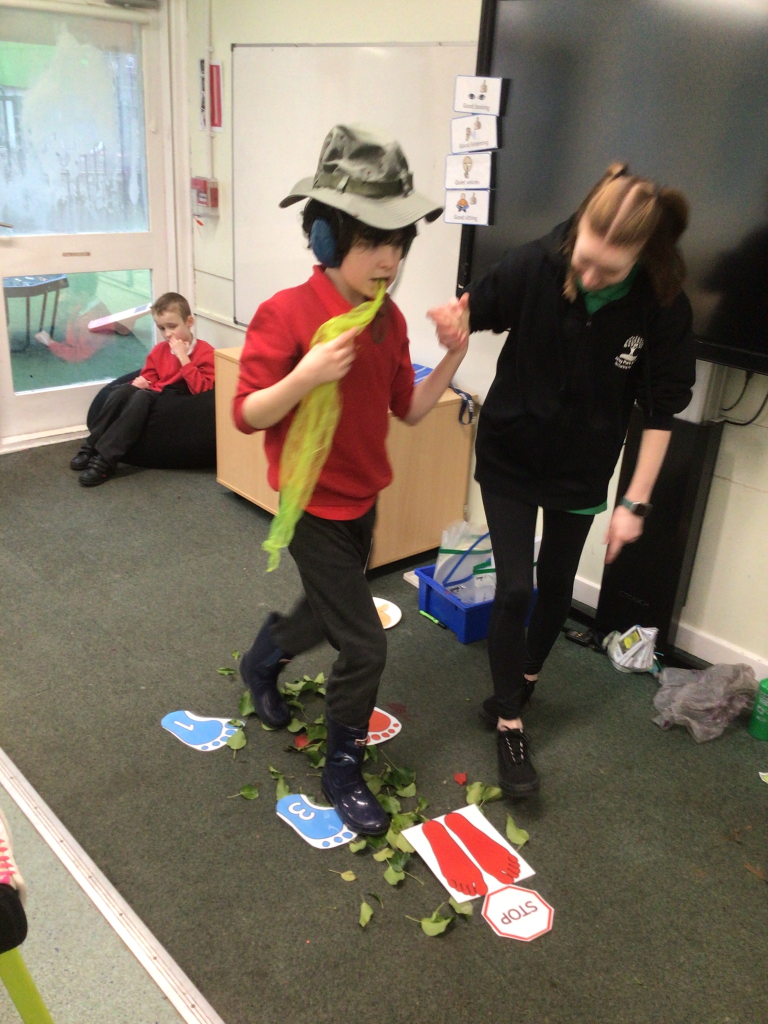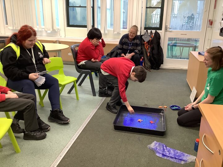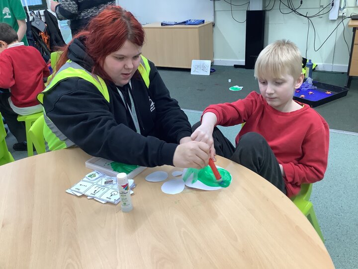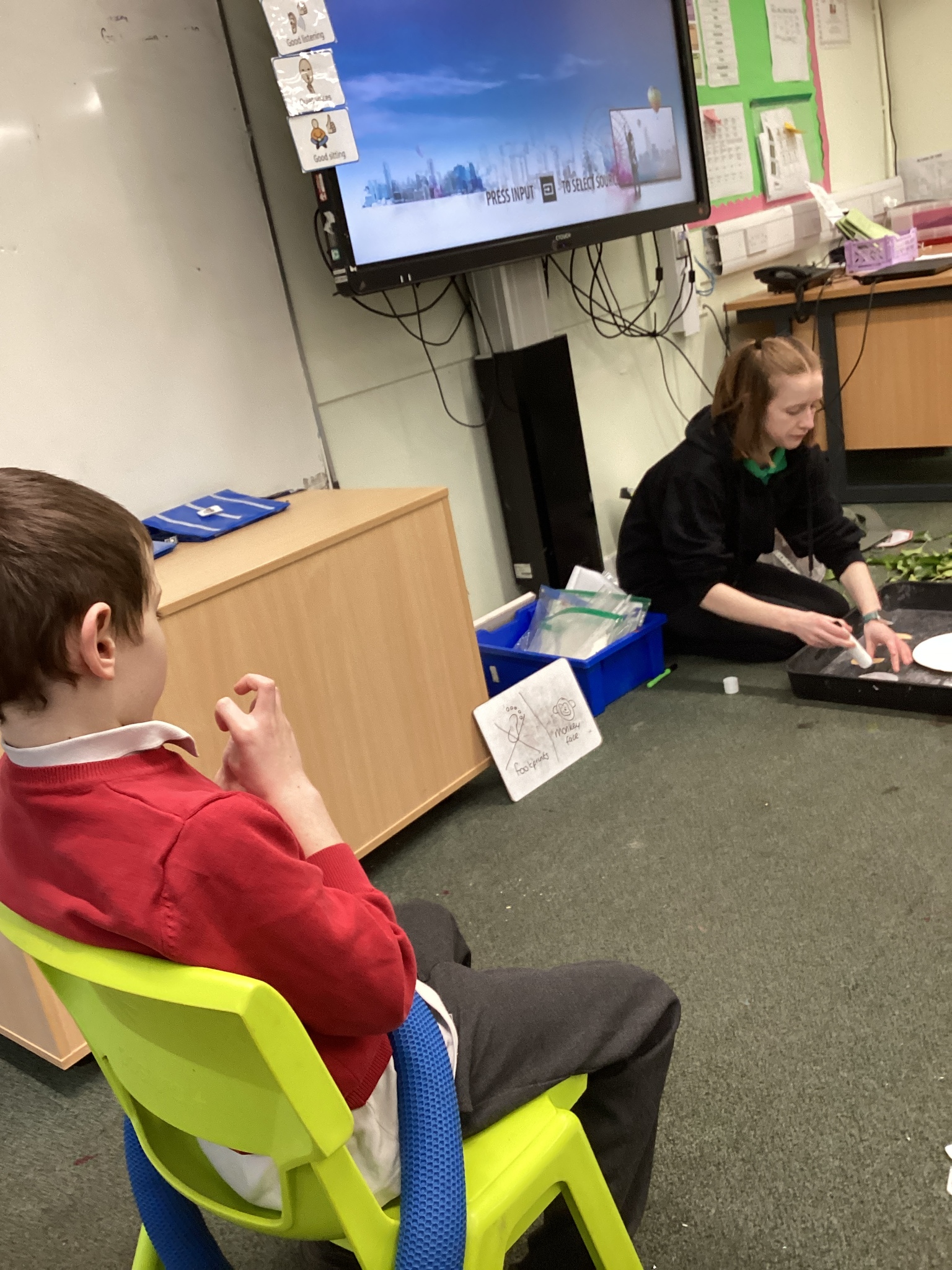 This week we have been super busy in Rowan class. On Monday morning we have done Attention Autism about numbers, counting how many footprints we could find in the jungle leaves. Then in the afternoon we have been making monkey faces. On Tuesday, in the morning we have done PE, we have been exploring movement like different animals do, then we have been doing our zoo themed sensology where we have been using our senses to explore different zoo themed activities which included smelling bird food, listening to the monkey sounds and touching the fur of the giraffe soft toy. On Tuesday afternoon, we have learning about the winter weather and used the umbrella to protect us from the ‘rain’ in class before making rain cloud pictures at the table. On Wednesday we have been learning about going to the zoo in our Dear Zoo sensory story, where we pretended to be the zoo animals and listened to their sounds. In the afternoon, we did a ‘5 speckled frog’ themed Attention Autism where we sang the song and had a turn making the frogs jump into the pond, before making our very own frog faces. On Thursday, we did a zoo themed Attention Autism where we learnt about tall giraffes and their long necks, making tall towers to represent a giraffe’s long neck. Then at the table we made our own giraffes with long necks. On Thursday afternoon we had a relaxing time in the sensory room. On Friday morning we have been exploring our senses again, this time during a winter themed sensology lesson where we smelt pine trees, tasted hot chocolate and felt the cold ice cubes. Then this afternoon we have been exploring musical instruments during a musical sensory lesson. We have also done lots of regulation throughout the week with track walks, sensory room and sensory integration room sessions and phonics lessons. What a super fun and busy week in Rowan Class!!