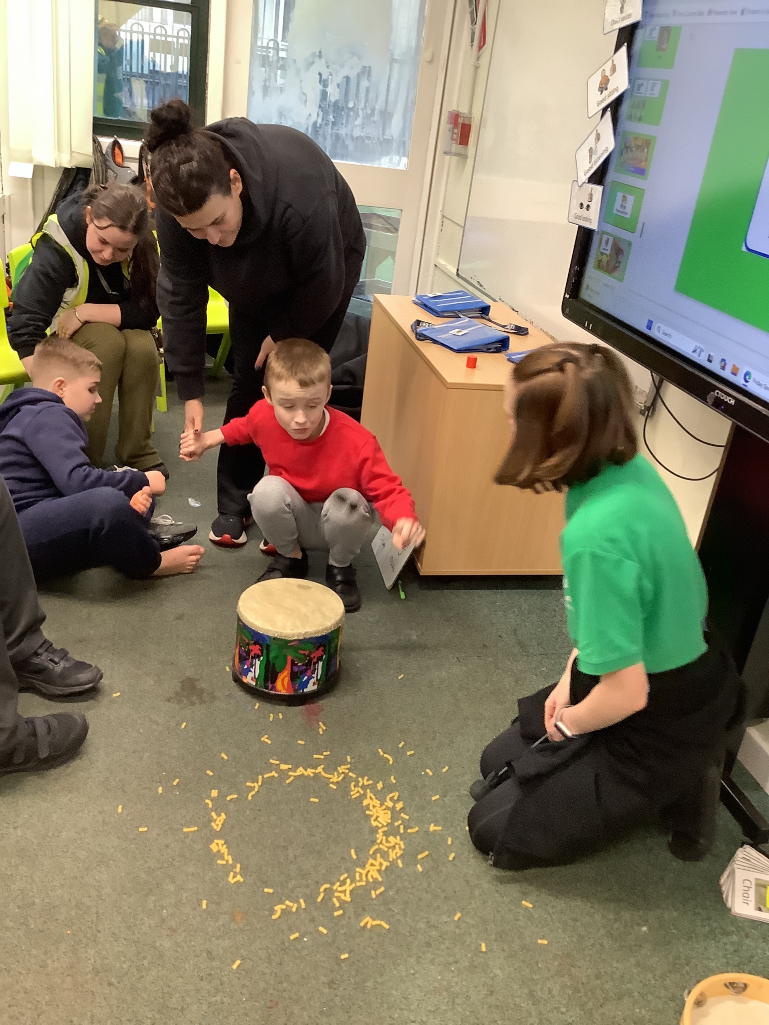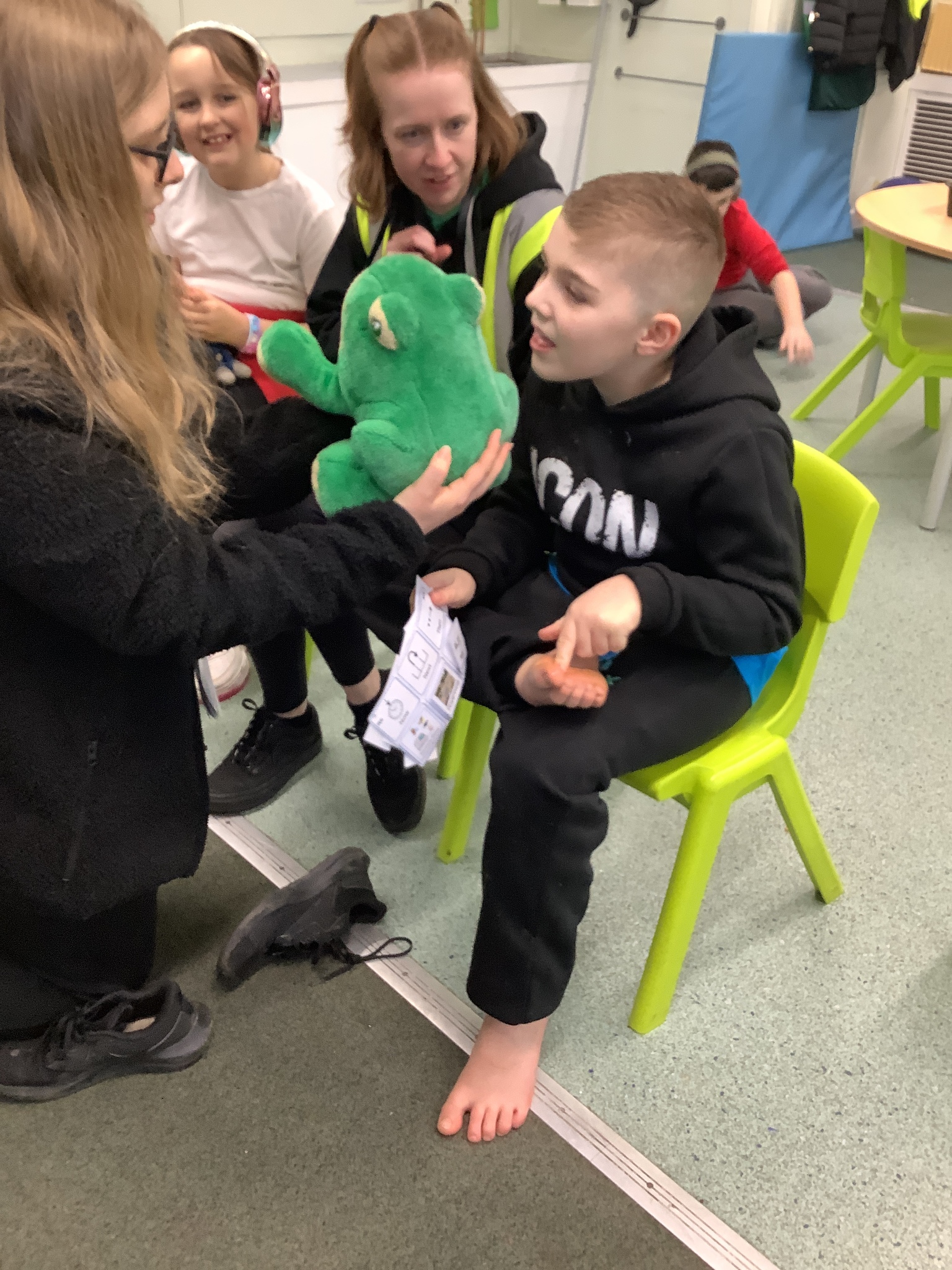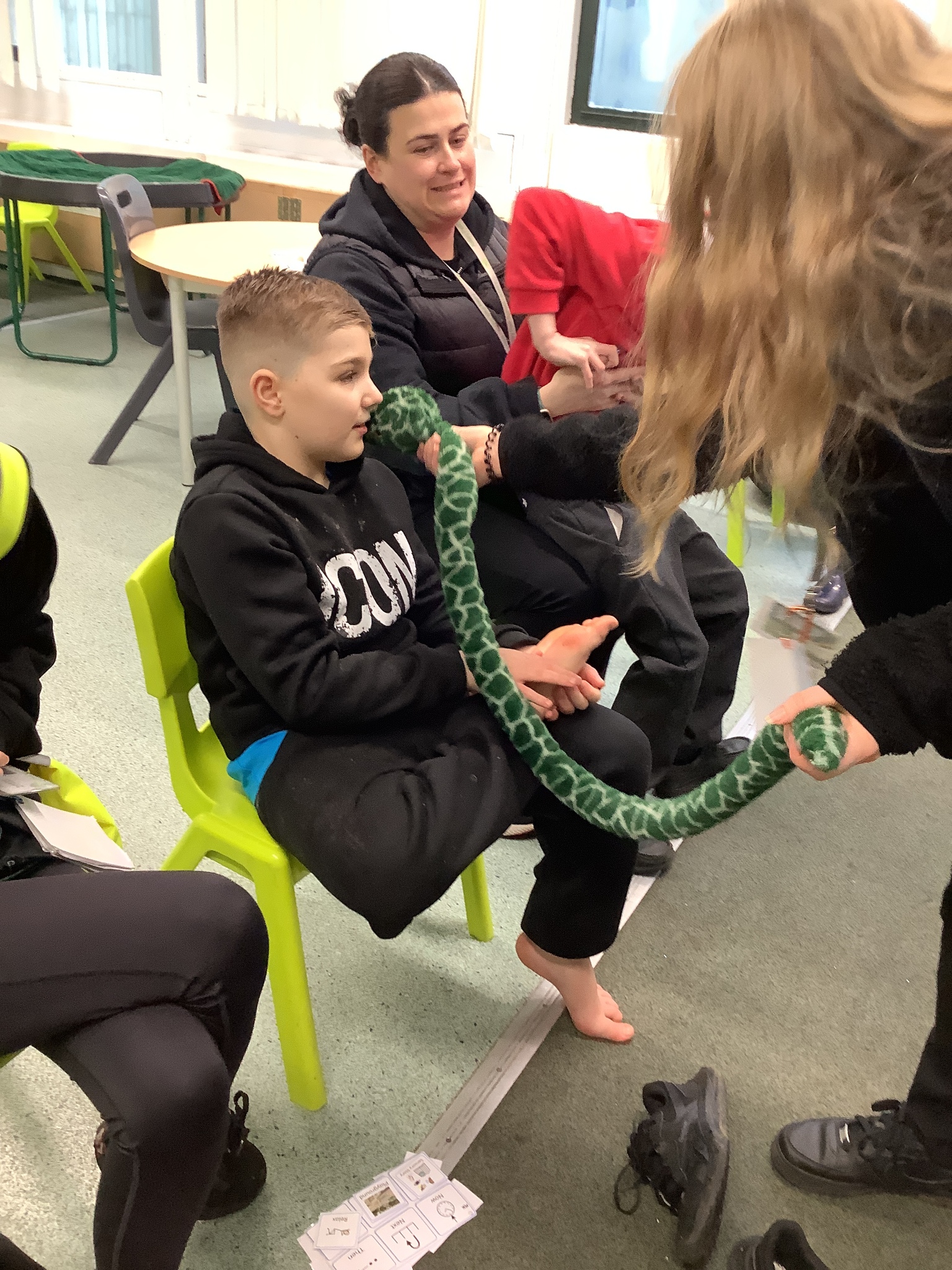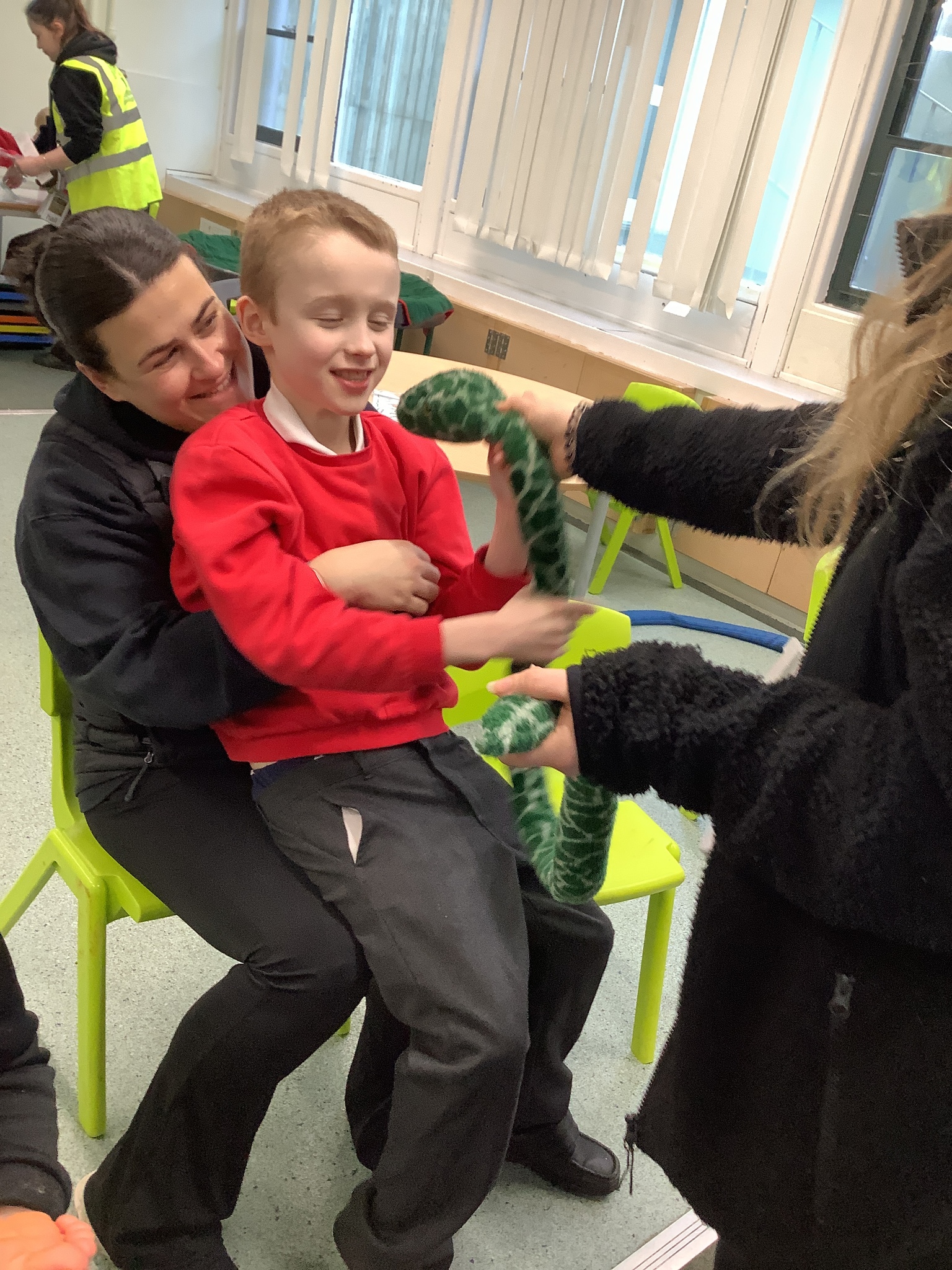 This week we have been super busy in Rowan class. On Monday morning we have done Attention Autism about numbers, counting how many footprints we could find in the jungle leaves. Then in the afternoon we have been making monkey faces. On Tuesday, in the morning we have done PE, we have been exploring movement like different animals do, then we have been doing our zoo themed sensology where we have been using our senses to explore different zoo themed activities which included smelling bird food, listening to the monkey sounds and touching the fur of the giraffe soft toy. On Tuesday afternoon, we have learning about the winter weather and used the umbrella to protect us from the ‘rain’ in class before making rain cloud pictures at the table. On Wednesday we have been learning about going to the zoo in our Dear Zoo sensory story, where we pretended to be the zoo animals and listened to their sounds. In the afternoon, we did a ‘5 speckled frog’ themed Attention Autism where we sang the song and had a turn making the frogs jump into the pond, before making our very own frog faces. On Thursday, we did a zoo themed Attention Autism where we learnt about tall giraffes and their long necks, making tall towers to represent a giraffe’s long neck. Then at the table we made our own giraffes with long necks. On Thursday afternoon we had a relaxing time in the sensory room. On Friday morning we have been exploring our senses again, this time during a winter themed sensology lesson where we smelt pine trees, tasted hot chocolate and felt the cold ice cubes. Then this afternoon we have been exploring musical instruments during a musical sensory lesson. We have also done lots of regulation throughout the week with track walks, sensory room and sensory integration room sessions and phonics lessons. What a super fun and busy week in Rowan Class!!