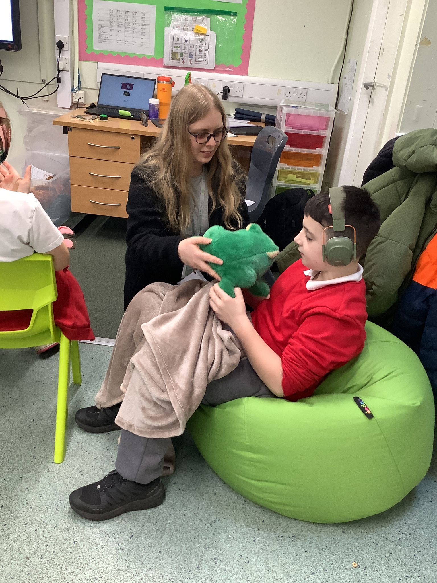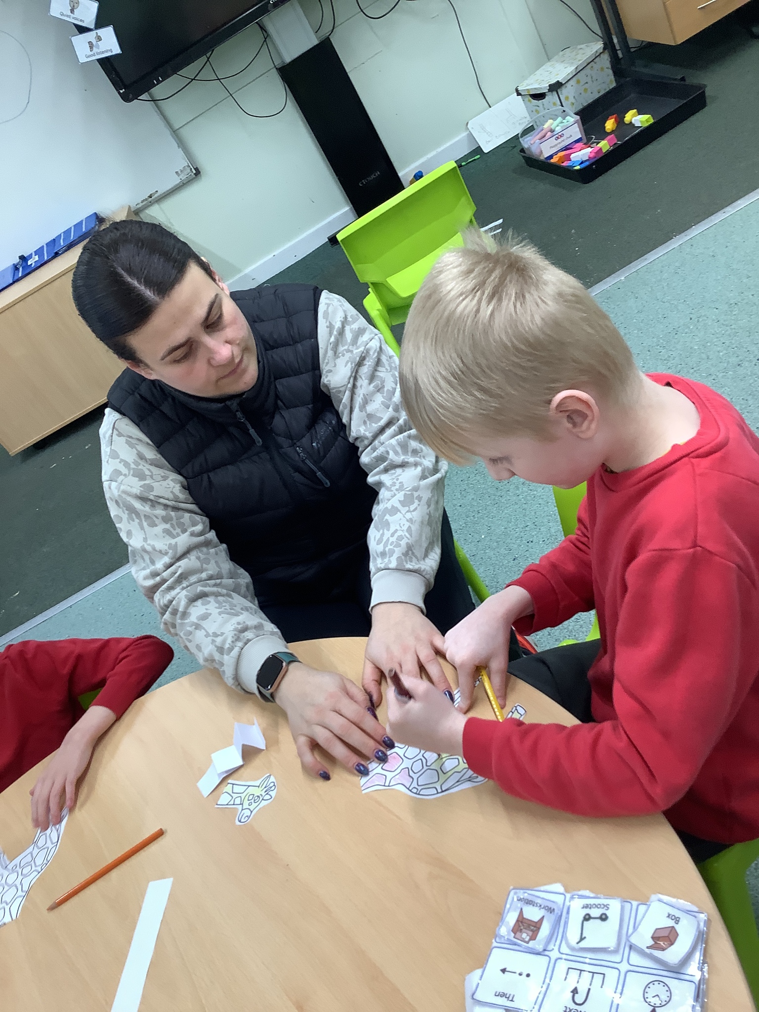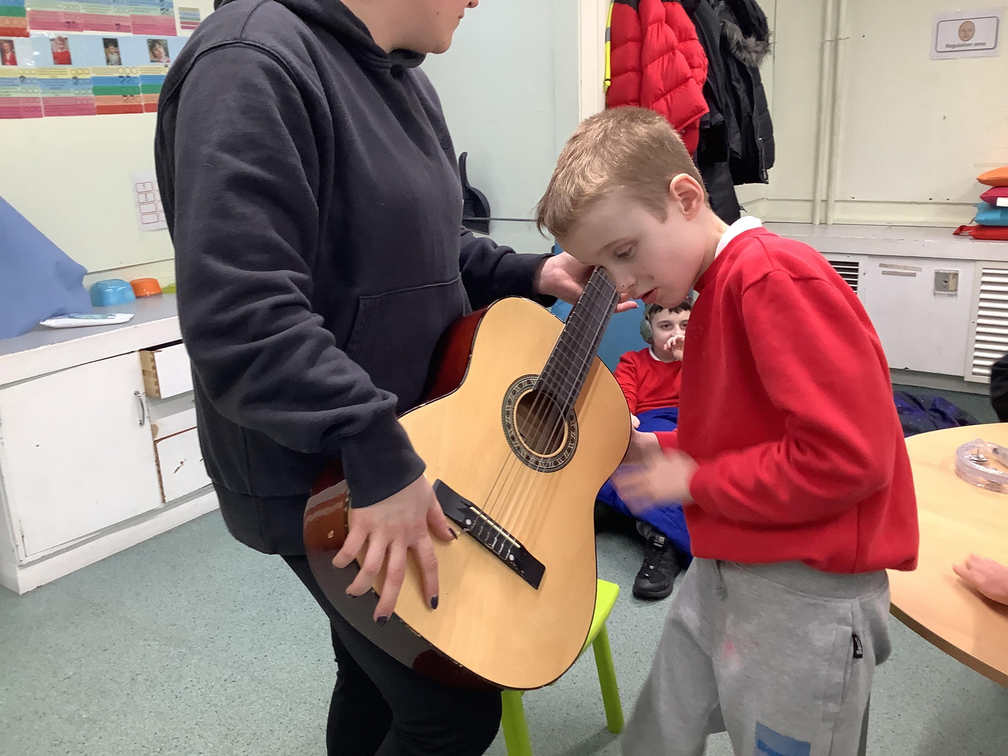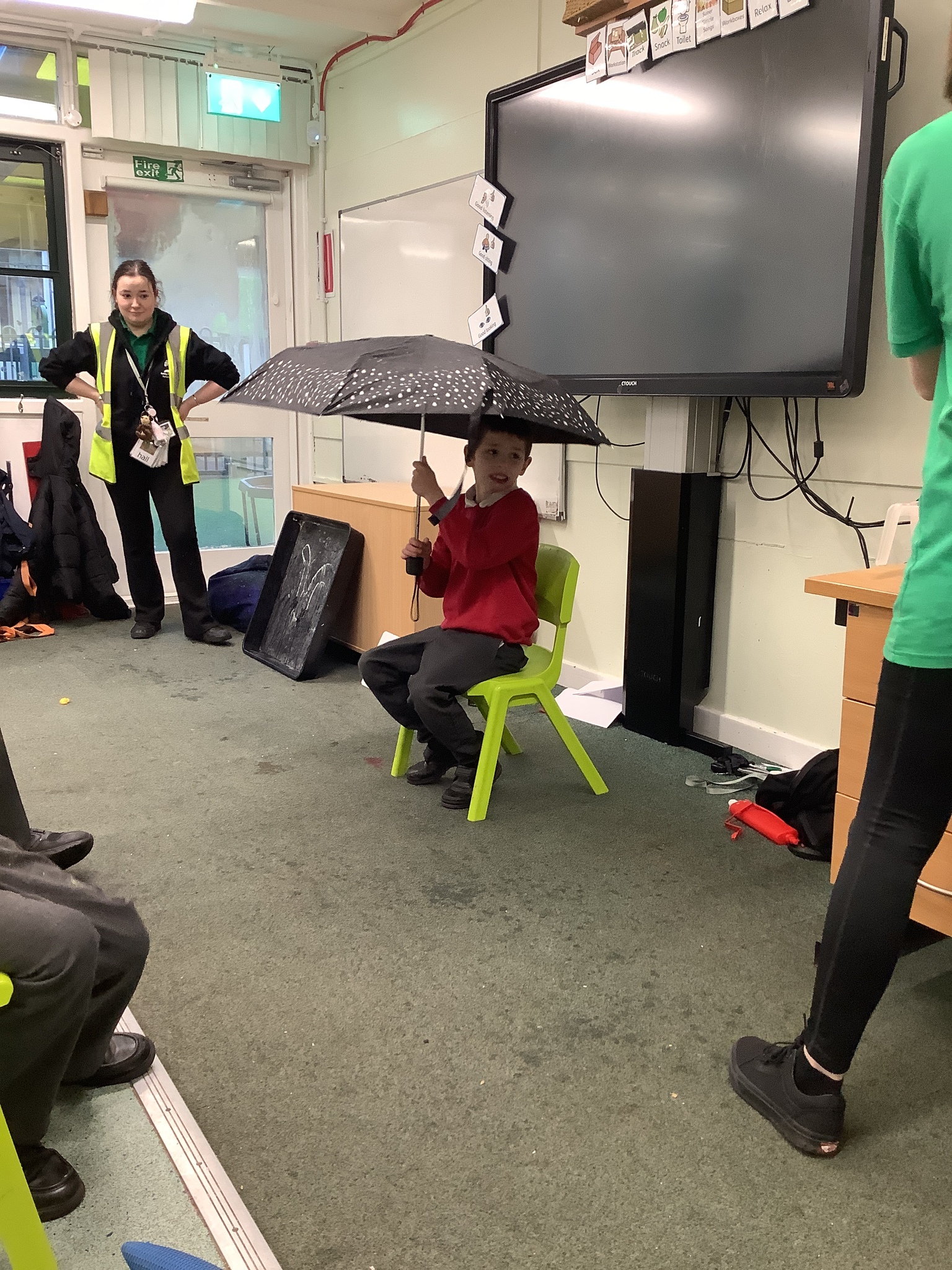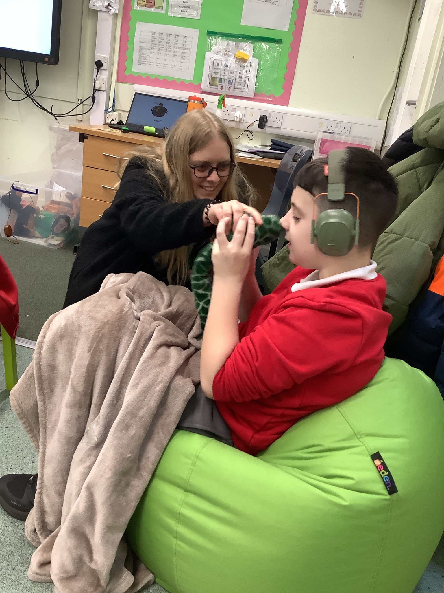 This week we have been super busy in Rowan class. On Monday morning we have done Attention Autism about numbers, counting how many footprints we could find in the jungle leaves. Then in the afternoon we have been making monkey faces. On Tuesday, in the morning we have done PE, we have been exploring movement like different animals do, then we have been doing our zoo themed sensology where we have been using our senses to explore different zoo themed activities which included smelling bird food, listening to the monkey sounds and touching the fur of the giraffe soft toy. On Tuesday afternoon, we have learning about the winter weather and used the umbrella to protect us from the ‘rain’ in class before making rain cloud pictures at the table. On Wednesday we have been learning about going to the zoo in our Dear Zoo sensory story, where we pretended to be the zoo animals and listened to their sounds. In the afternoon, we did a ‘5 speckled frog’ themed Attention Autism where we sang the song and had a turn making the frogs jump into the pond, before making our very own frog faces. On Thursday, we did a zoo themed Attention Autism where we learnt about tall giraffes and their long necks, making tall towers to represent a giraffe’s long neck. Then at the table we made our own giraffes with long necks. On Thursday afternoon we had a relaxing time in the sensory room. On Friday morning we have been exploring our senses again, this time during a winter themed sensology lesson where we smelt pine trees, tasted hot chocolate and felt the cold ice cubes. Then this afternoon we have been exploring musical instruments during a musical sensory lesson. We have also done lots of regulation throughout the week with track walks, sensory room and sensory integration room sessions and phonics lessons. What a super fun and busy week in Rowan Class!!