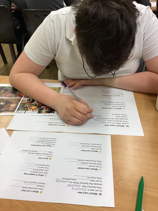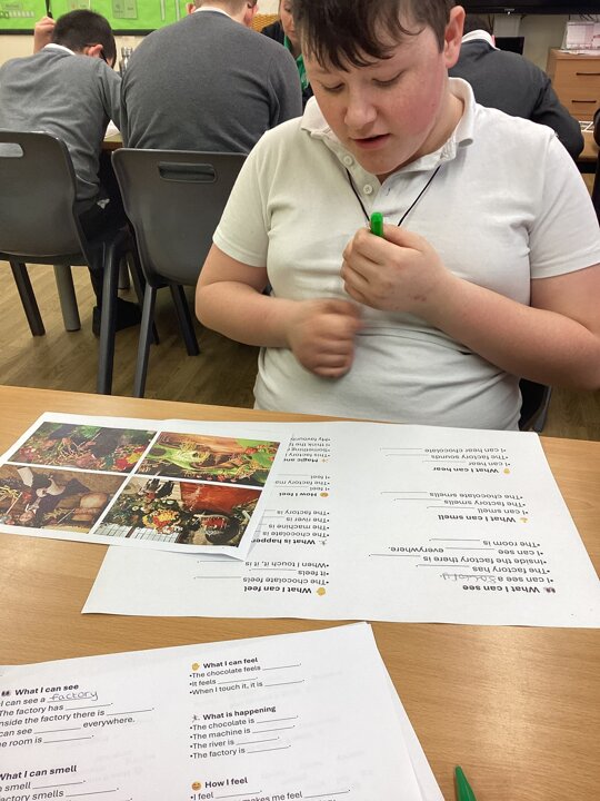This week we have continued with our Charlie and the chocolate factory work. We looked at pictures from the chocolate room in the factory and had to use adjectives to describe what we could see. We had some wonderful descriptive sentences.