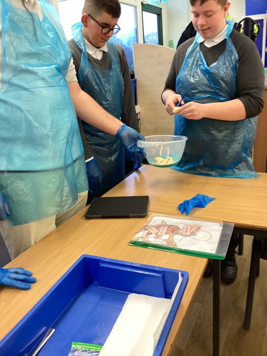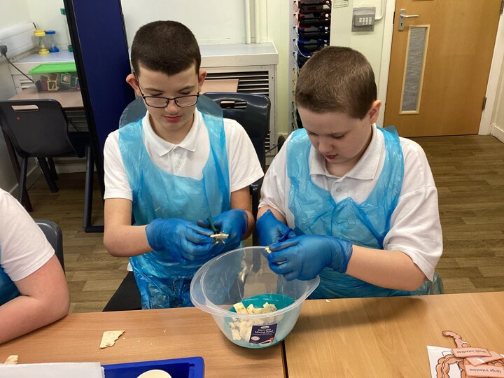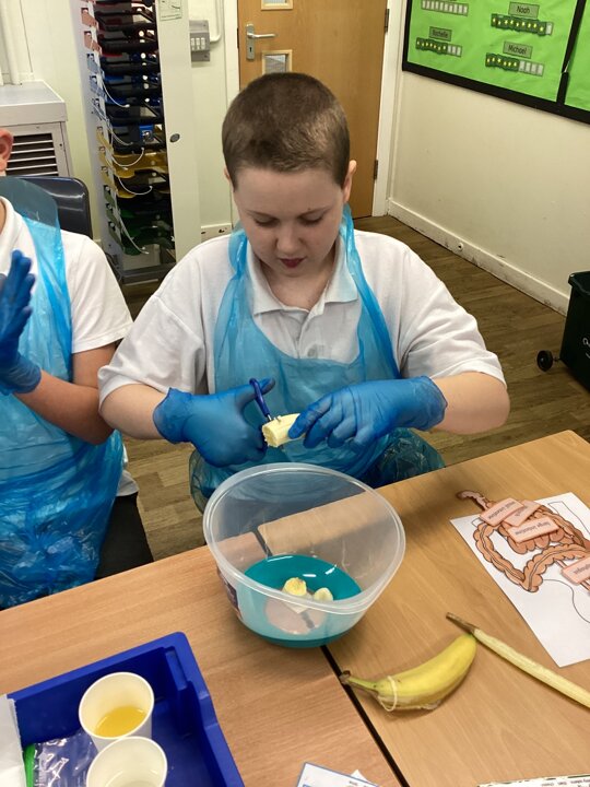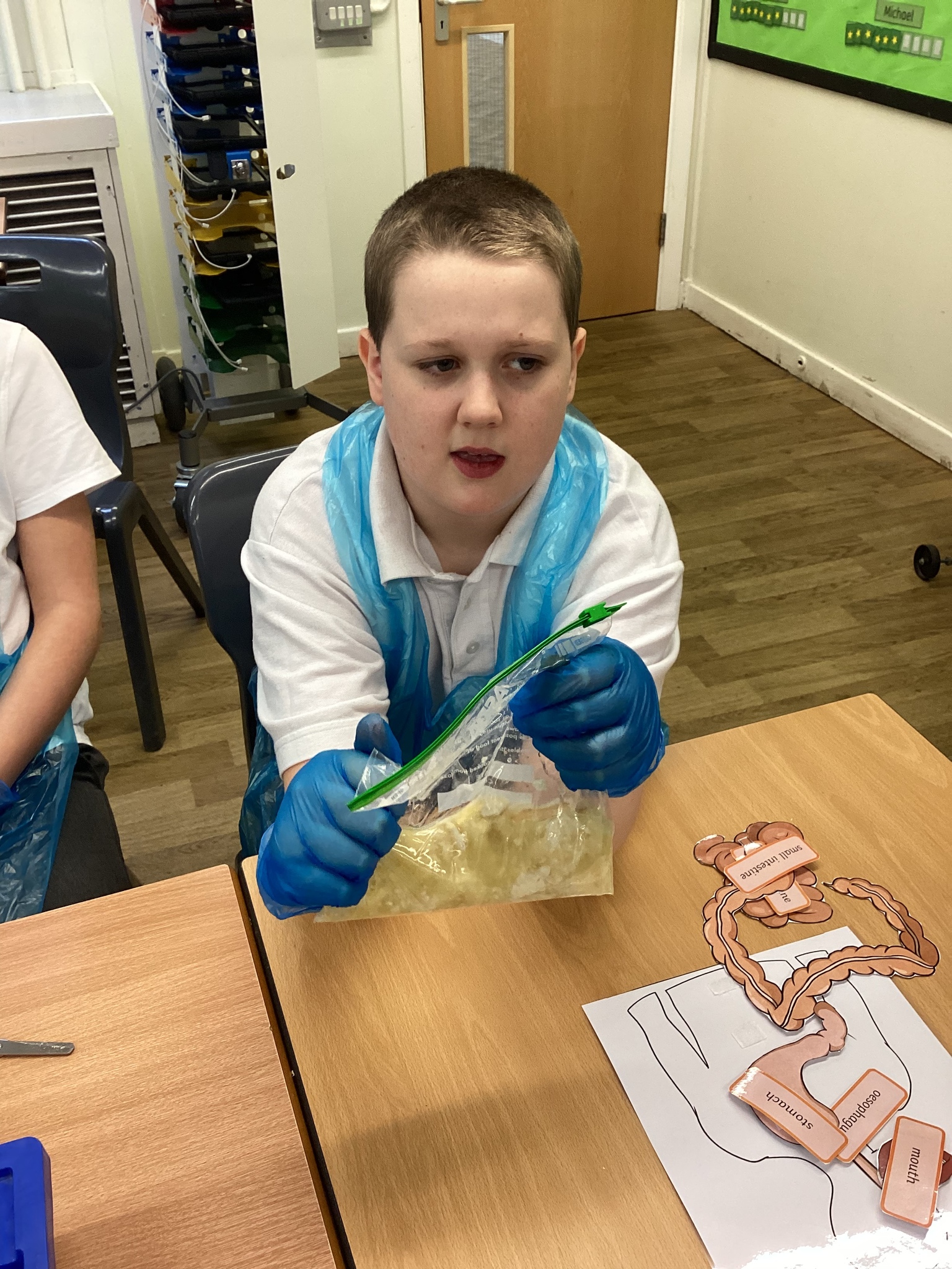 In Me and My body we have looked at the digestive system. We had a hands on task to help us learn all about what happens to our food when we eat it. It was a messy activity, but we all enjoyed it and had lots of fun doing it.