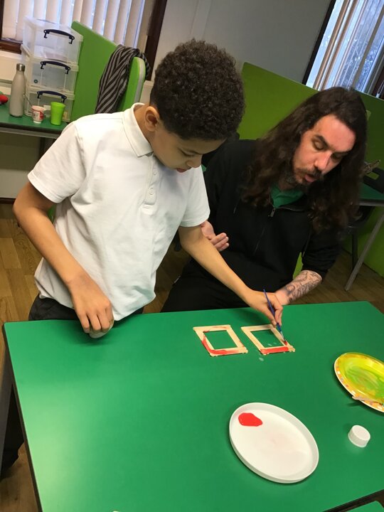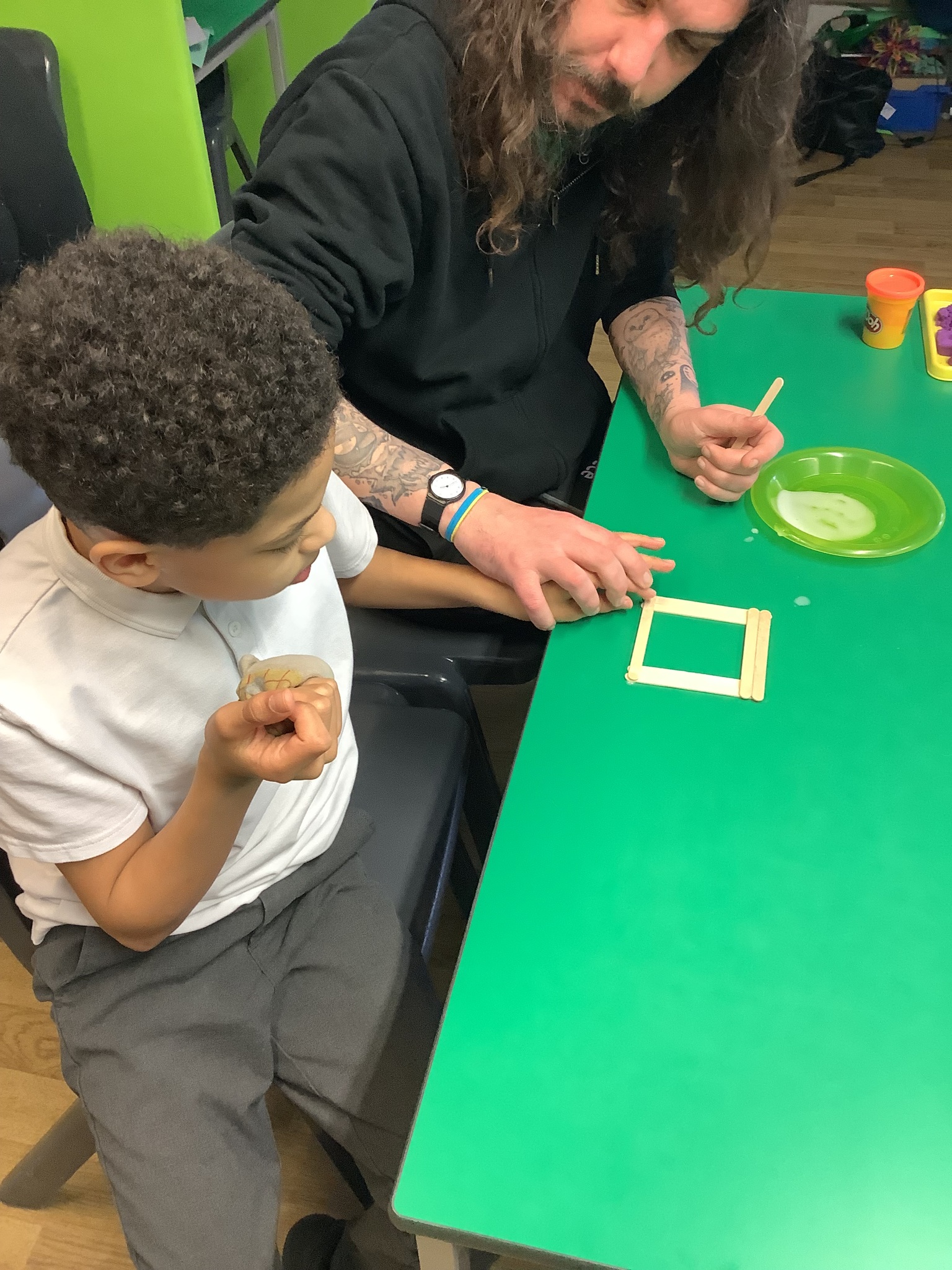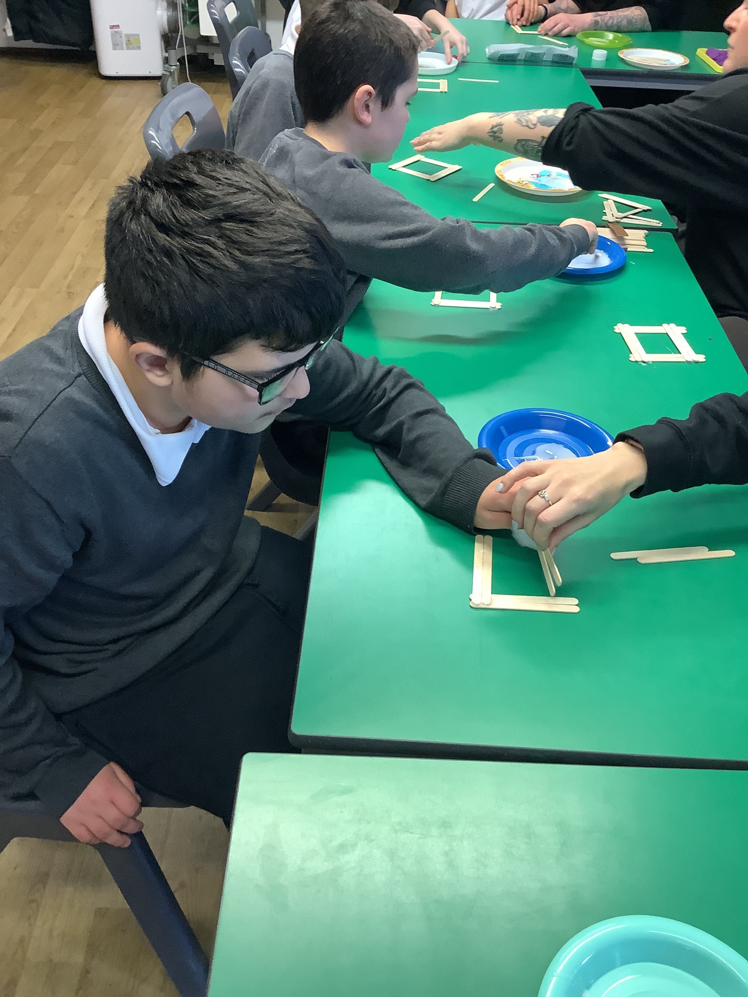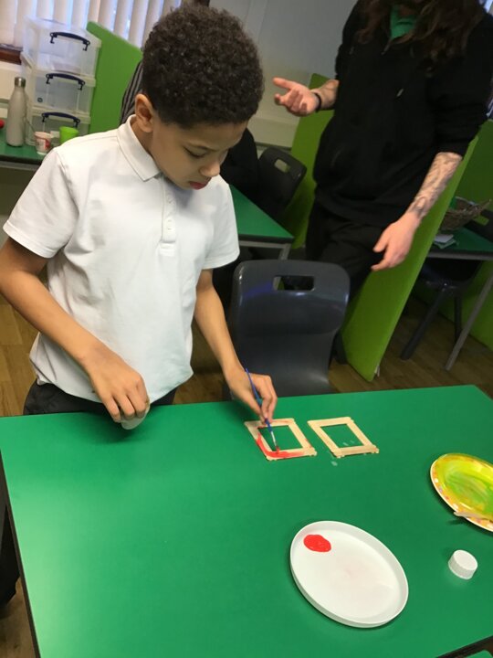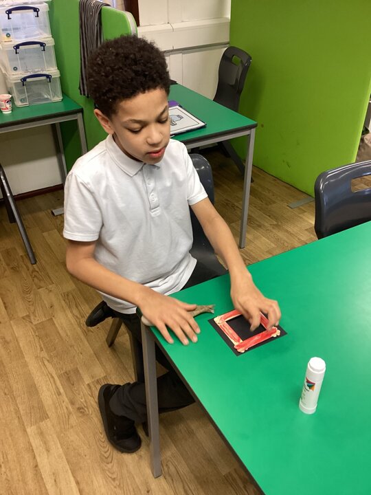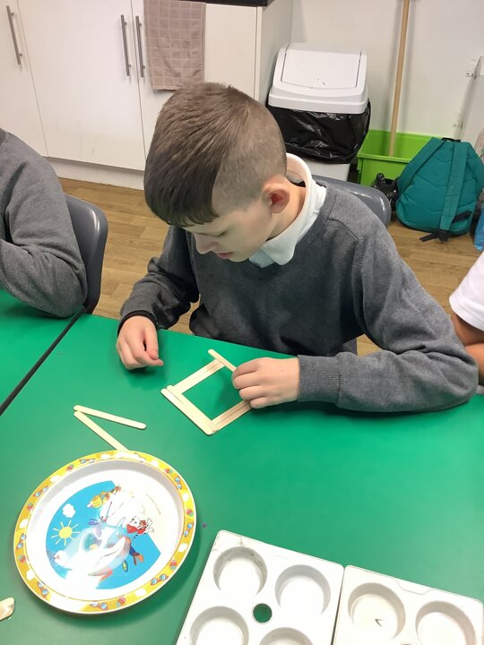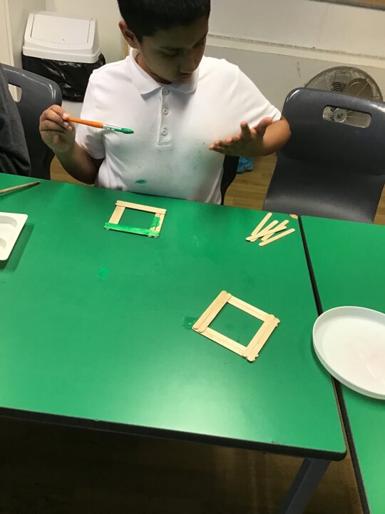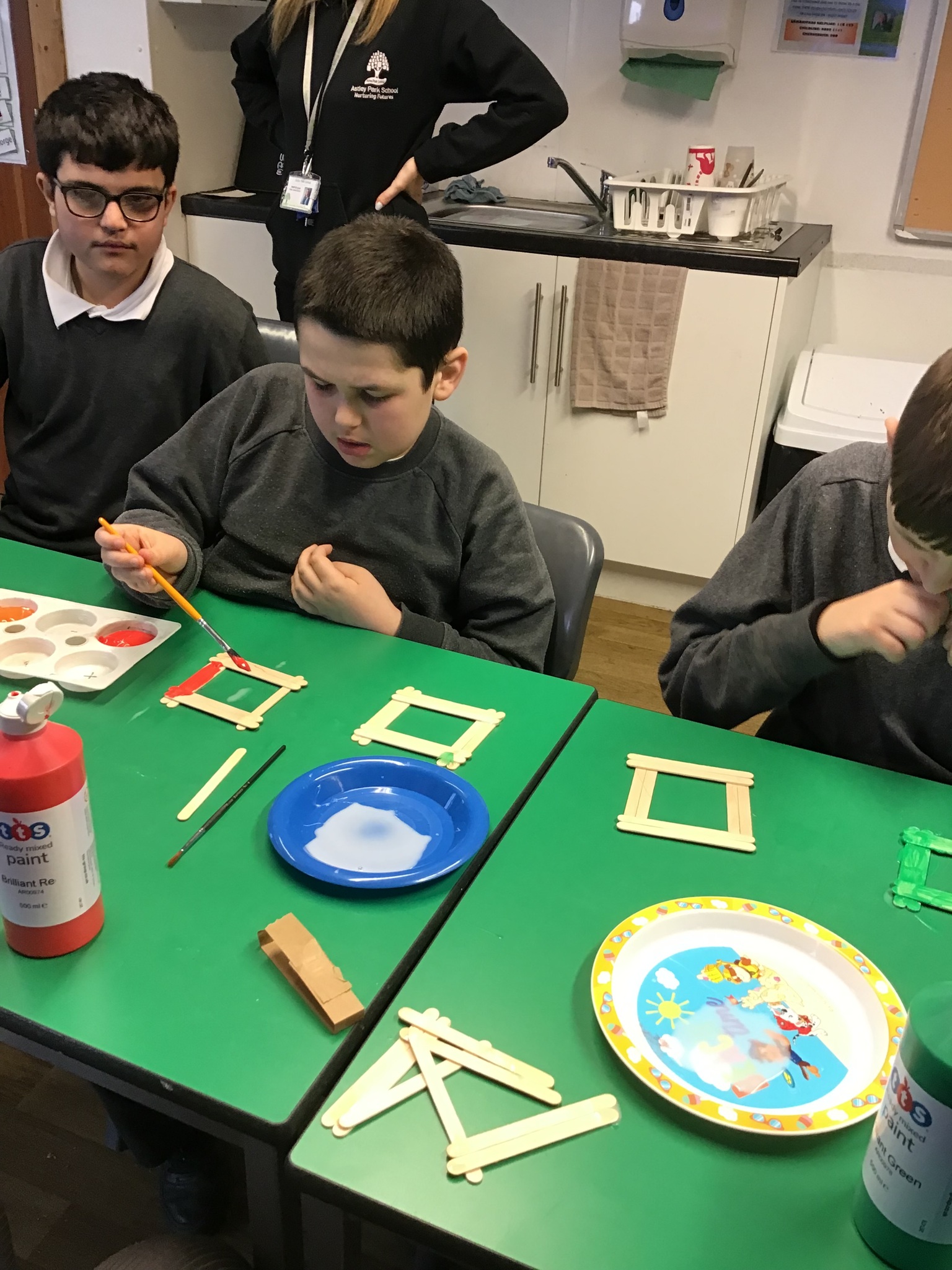 Last week in 7P’s Design Technology lesson we used lolly sticks to make photoframes, using PVA glue we stuck eight lolly sticks together in the shape of a square before painting and decorating them as we wanted to. We then let them dry, and in this week’s Design Technology lesson we moved on to putting photos inside them.