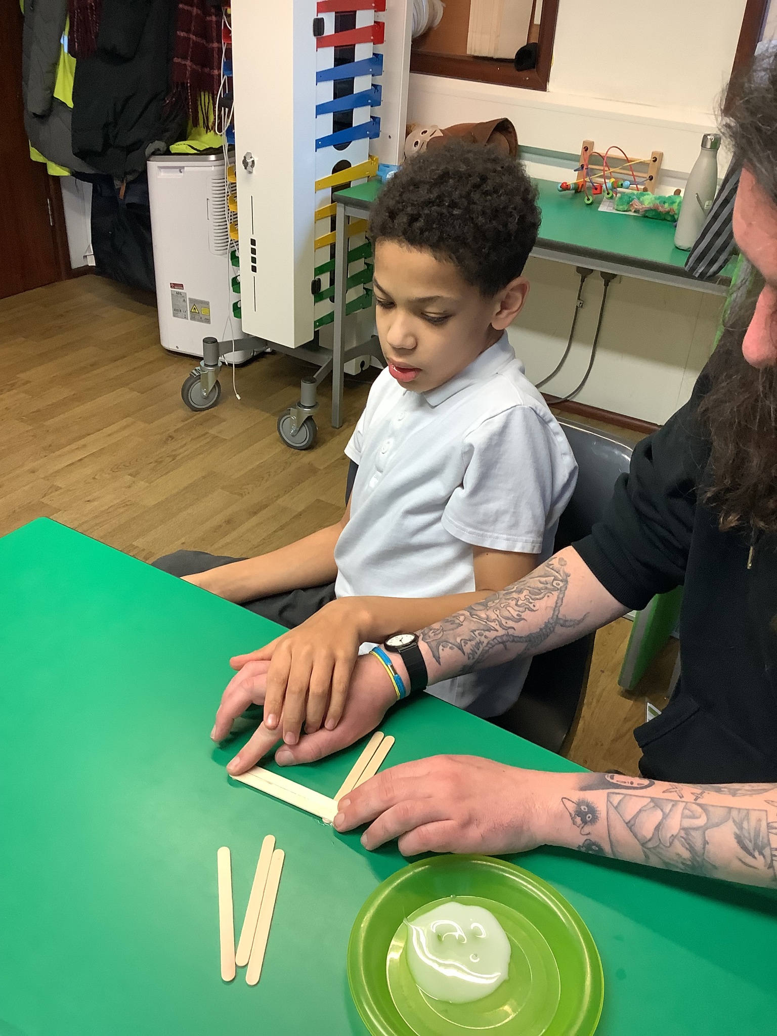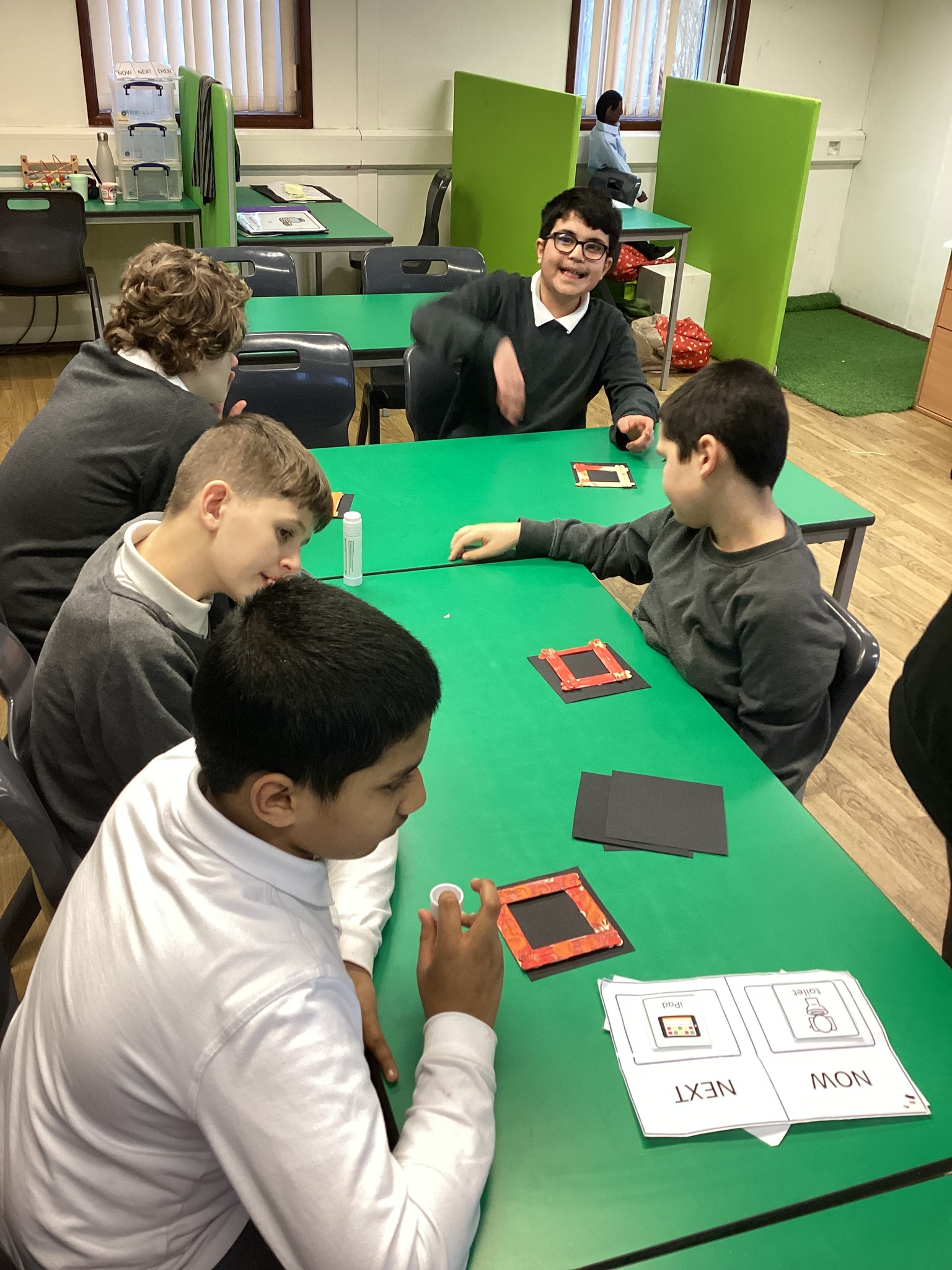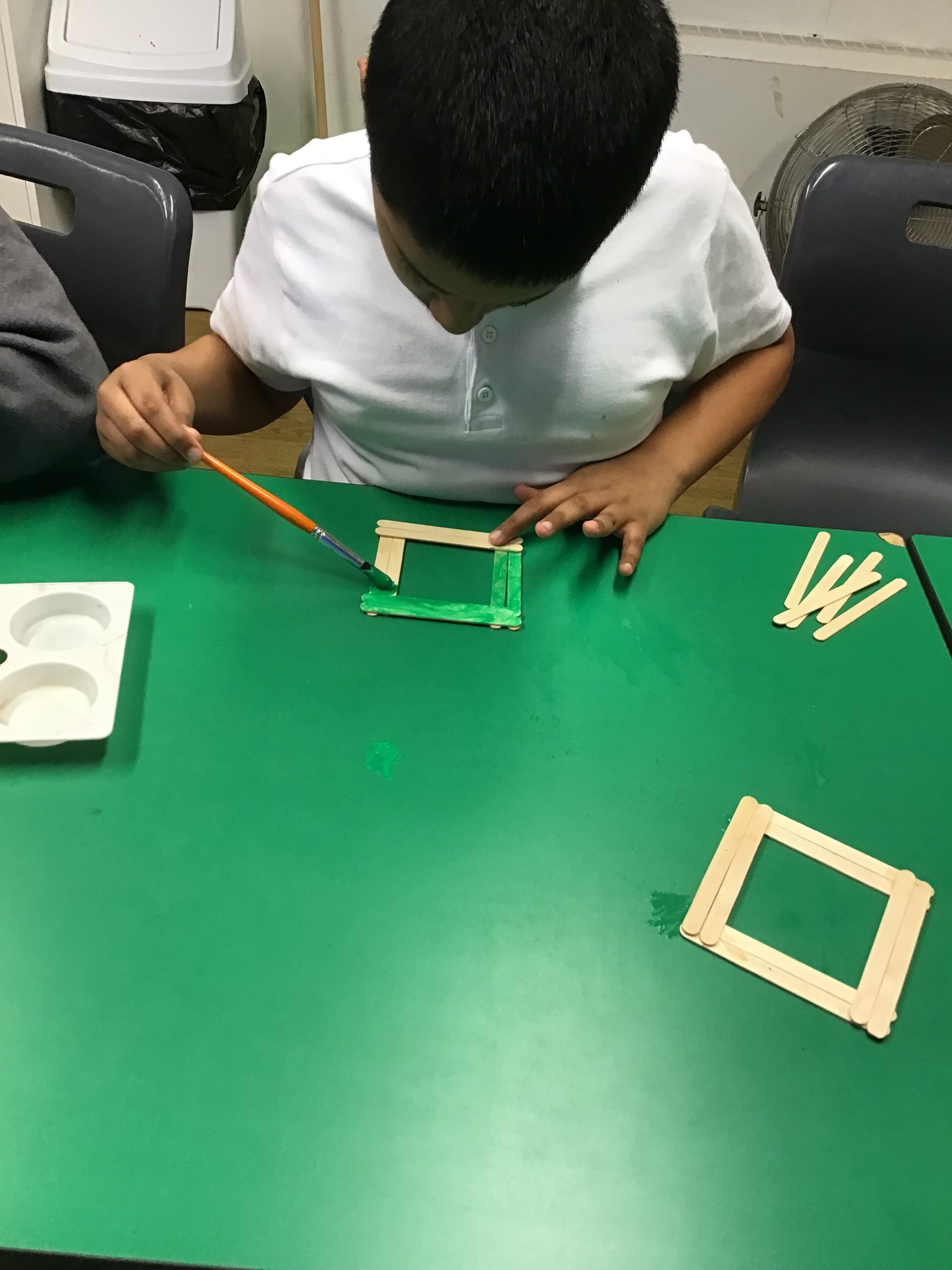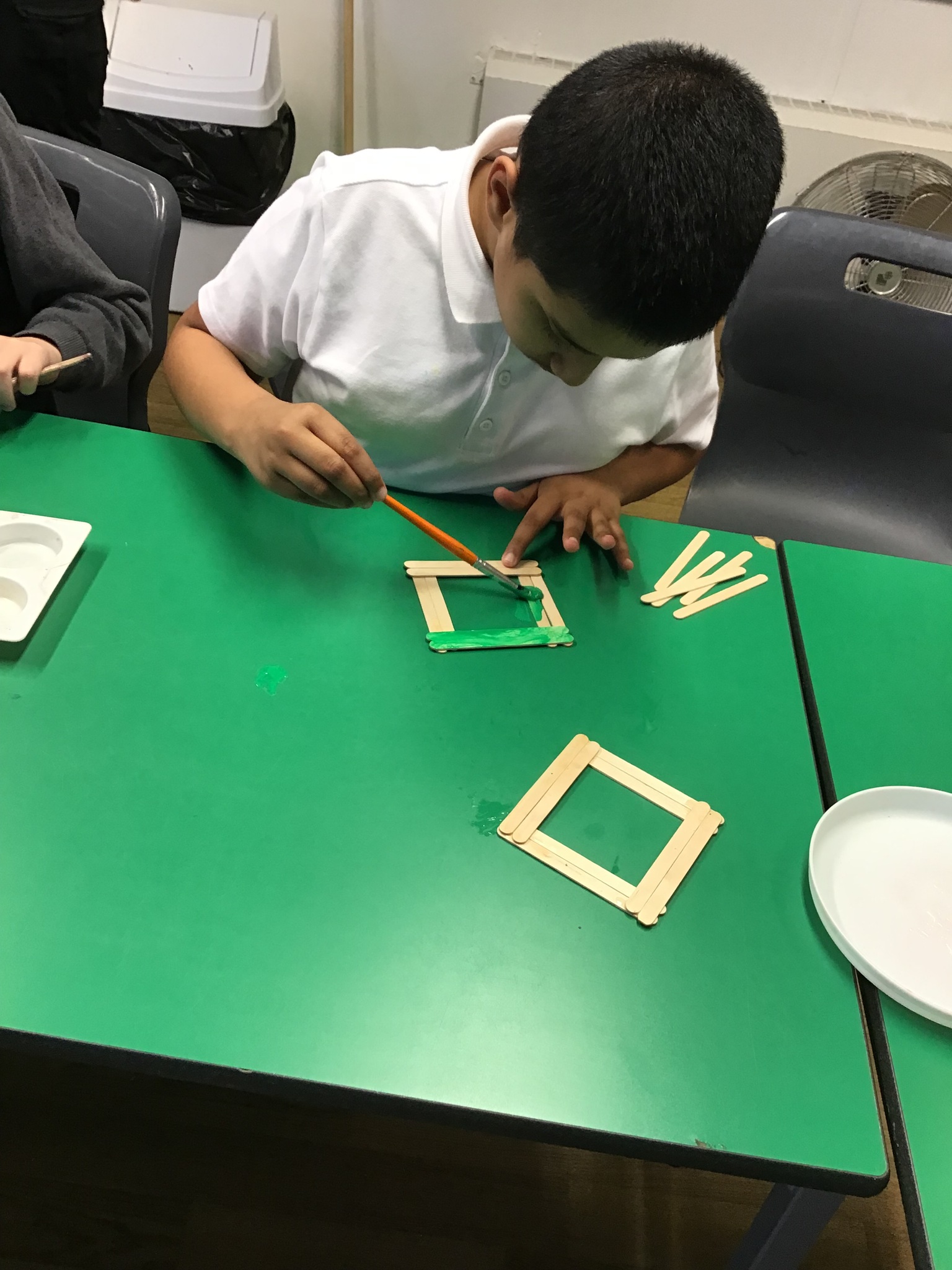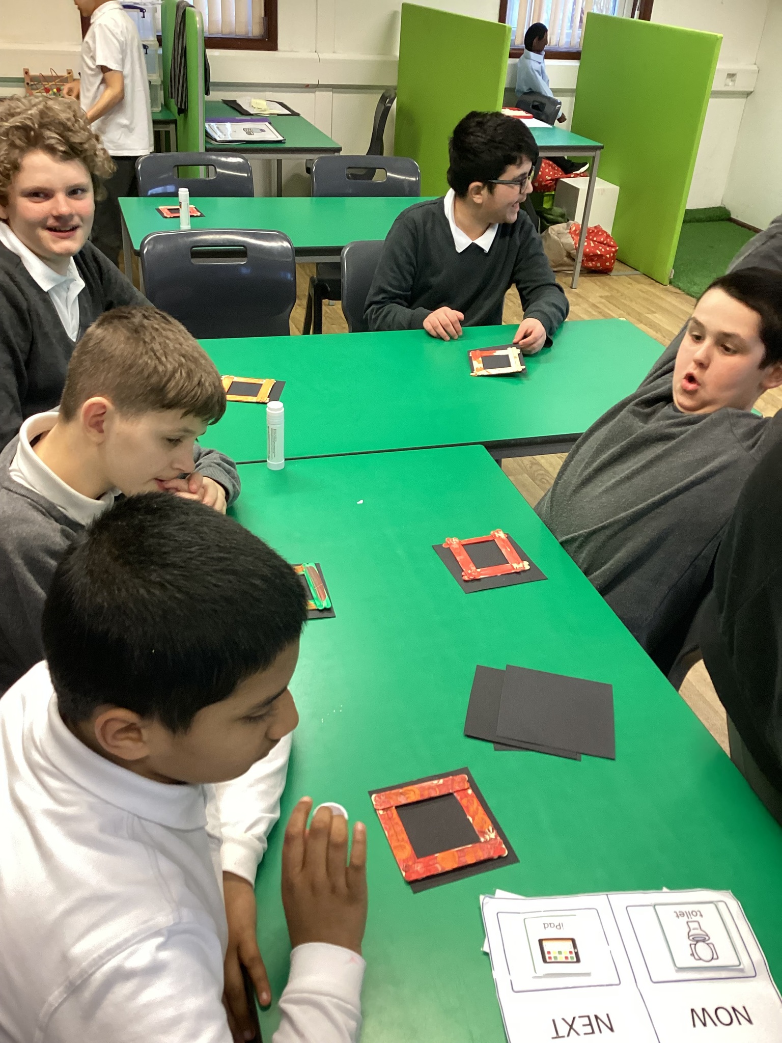 Last week in 7P’s Design Technology lesson we used lolly sticks to make photoframes, using PVA glue we stuck eight lolly sticks together in the shape of a square before painting and decorating them as we wanted to. We then let them dry, and in this week’s Design Technology lesson we moved on to putting photos inside them.