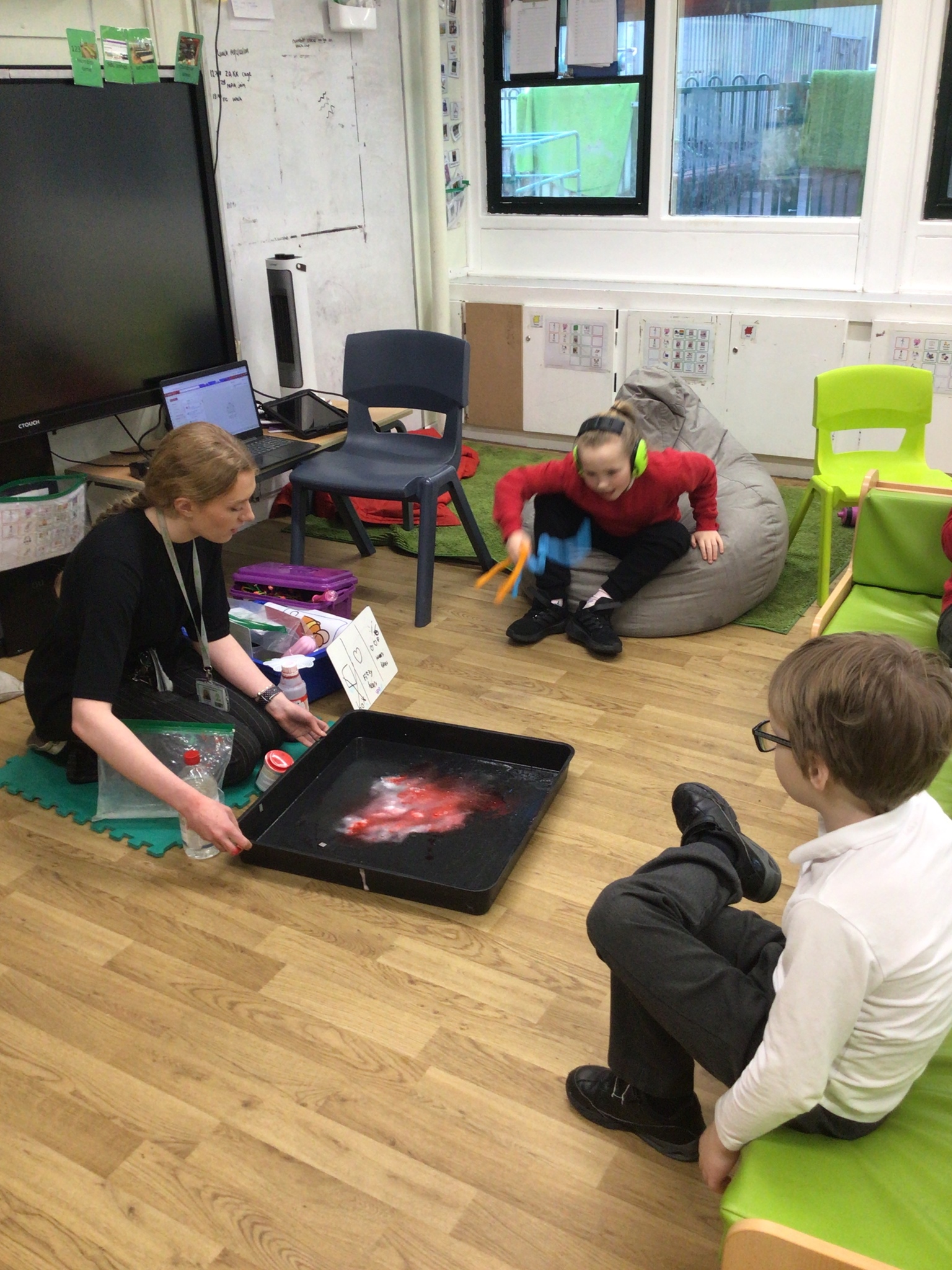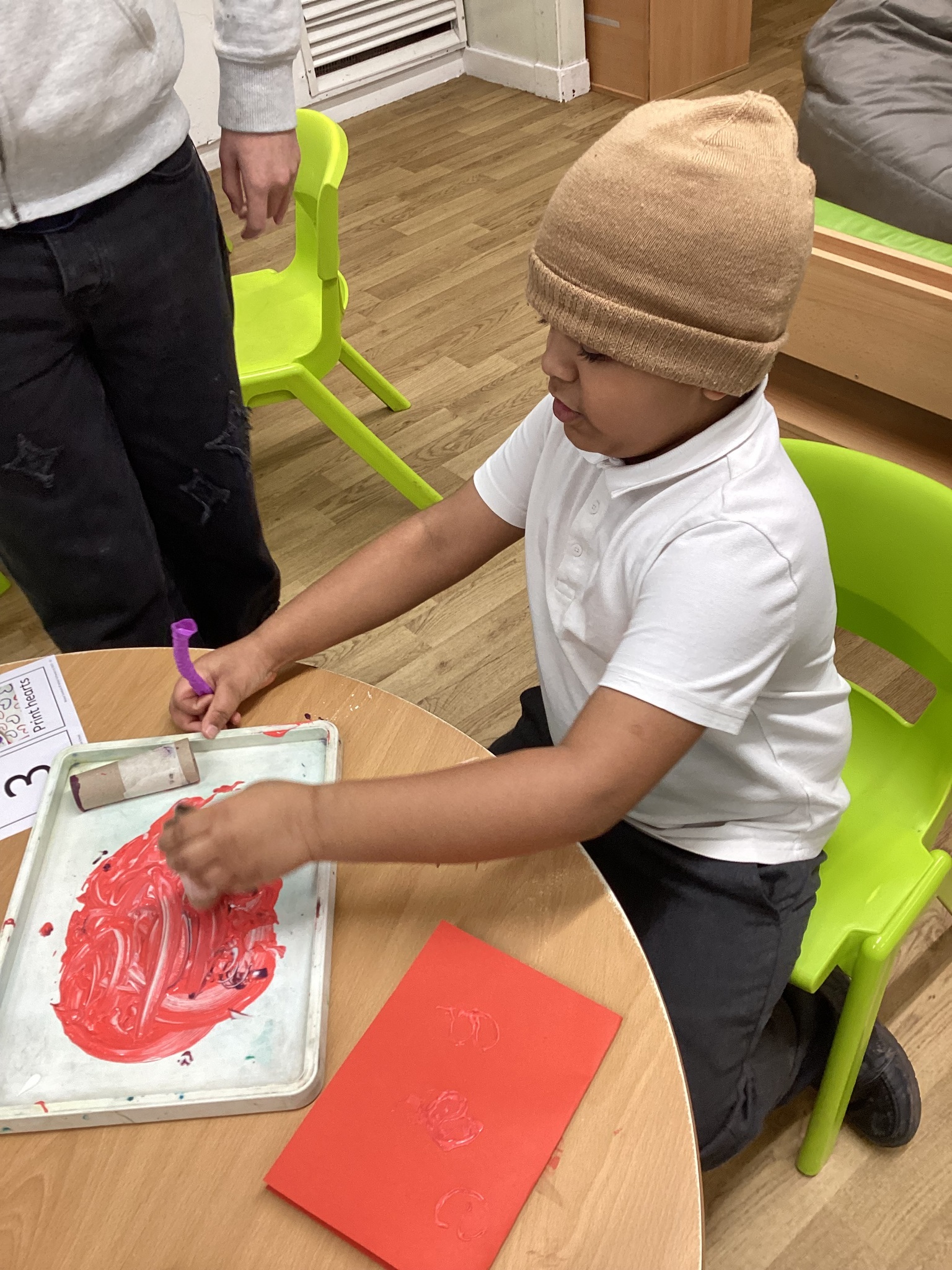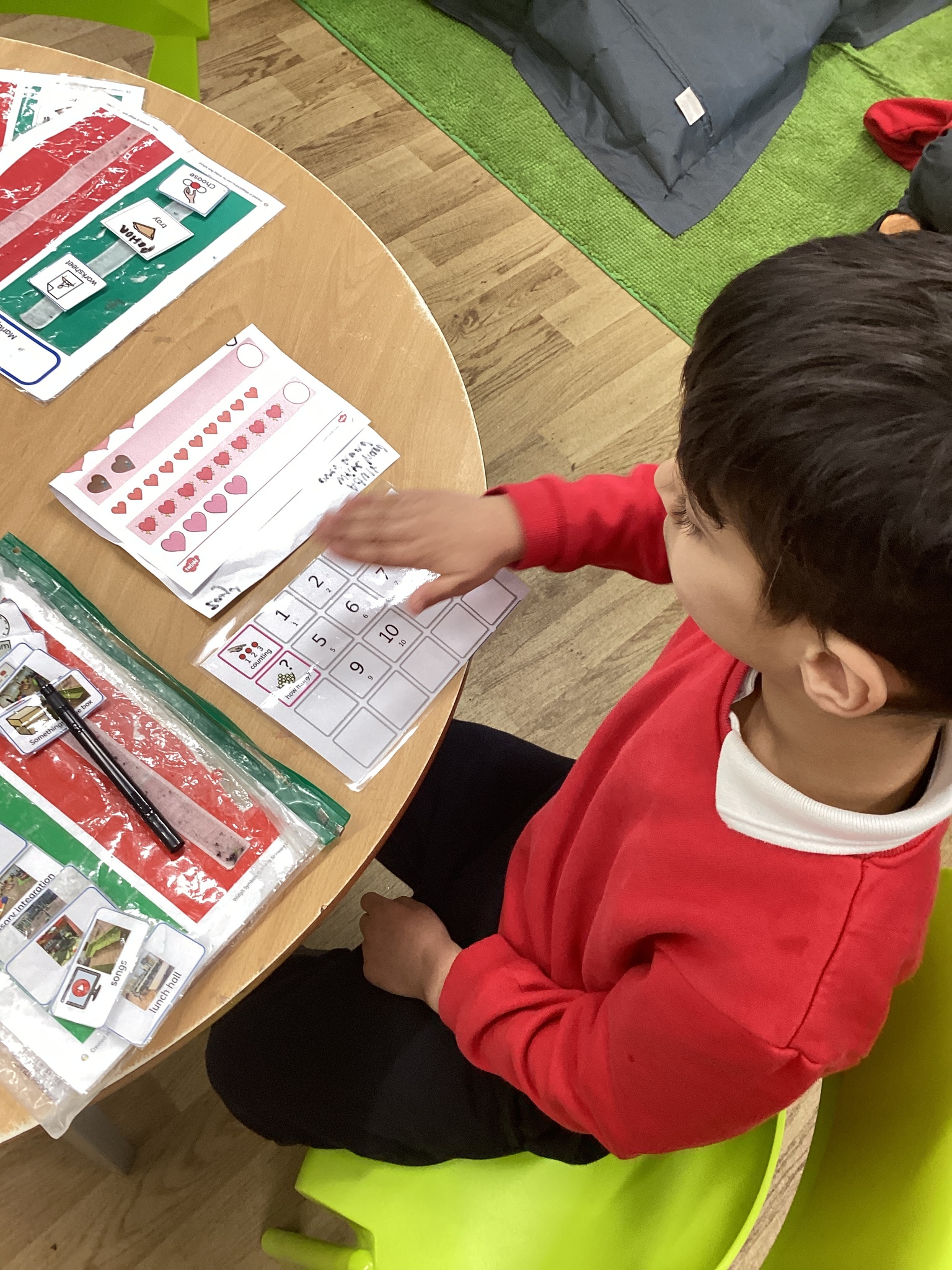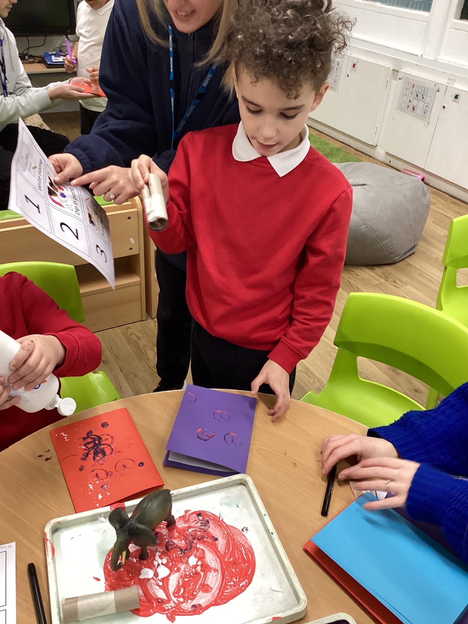 This week in Chestnut class, we have been exploring the theme Valentines. During our number attention autism, we watched carefully the confetti popper, bubbles and heart balloon during stage 1, labelling items ‘big’ and ‘small’. During stage 2, we watched Miss Seddon make a fizzy heart with red colouring and vinegar. We watched and listened to it fizz! For stage 3, we joined in with our friends and sang the skidamarink song, taking it in turns to hug the teddy bear. For some of us, stage 3 was adapted to suit our understanding better, and so we had a turn at splatting pink foam hearts. During stage 4, we each decorated our own valentines cards for our families by printing love hearts from paint and also practicing writing our own names.