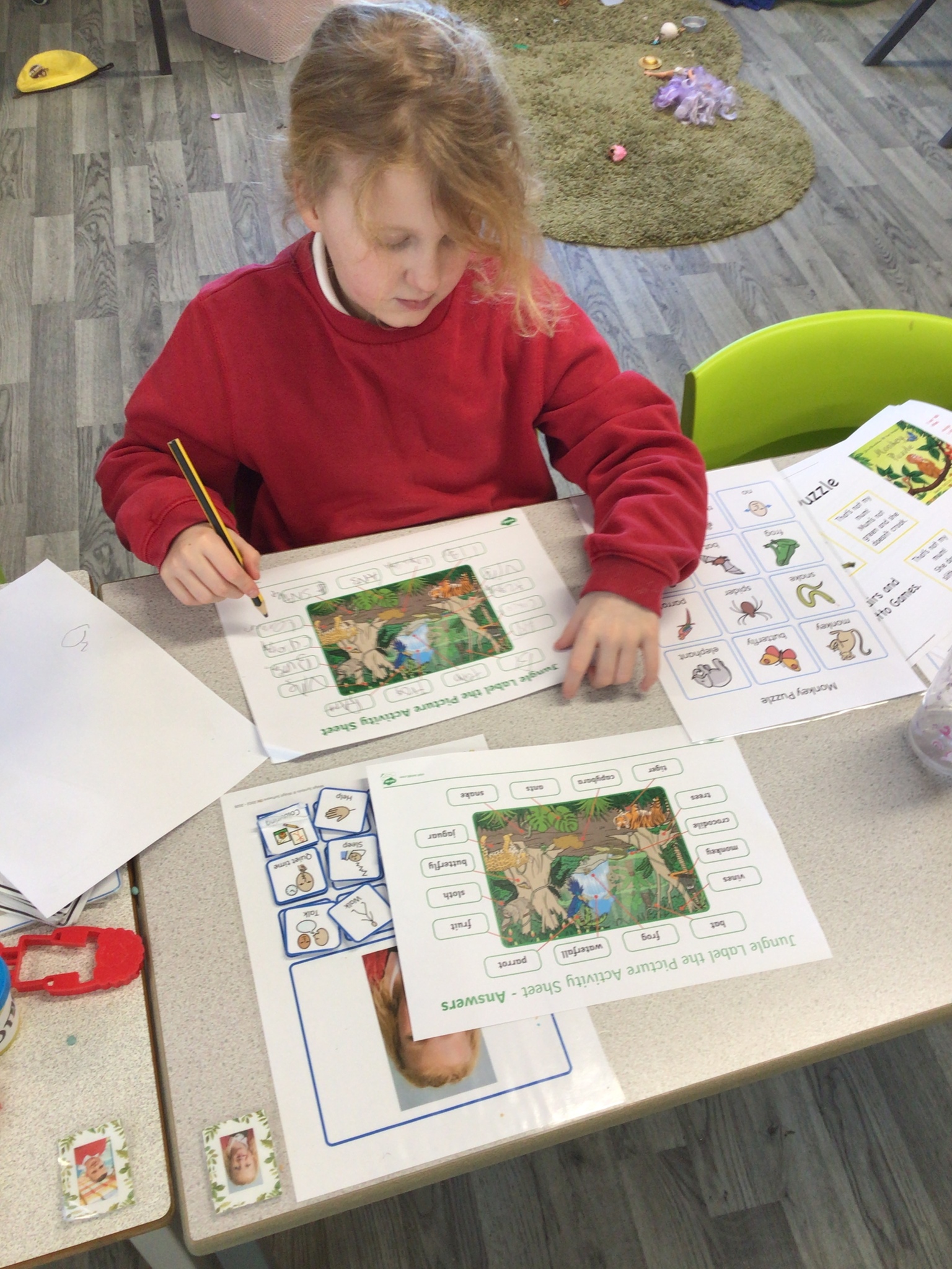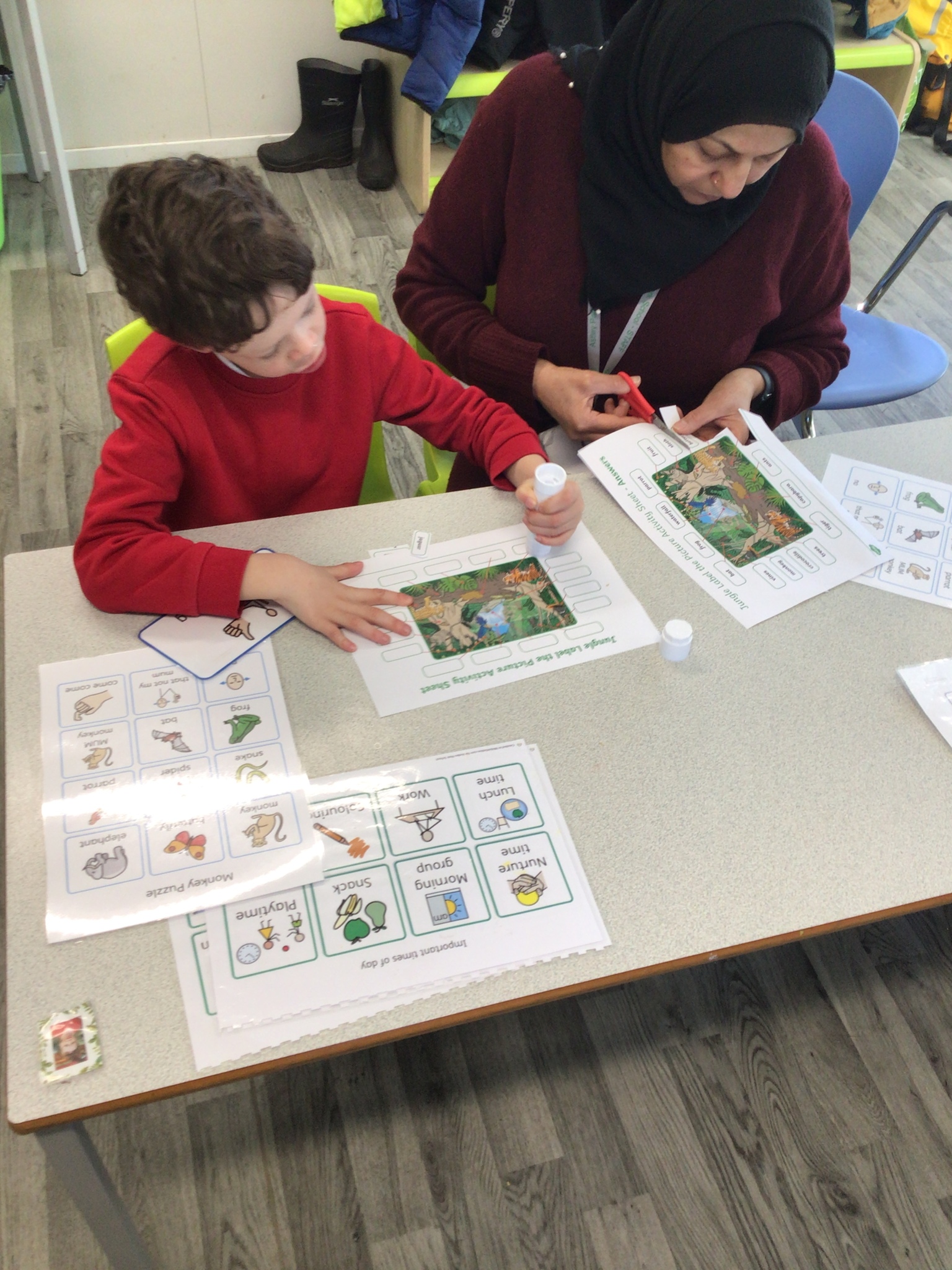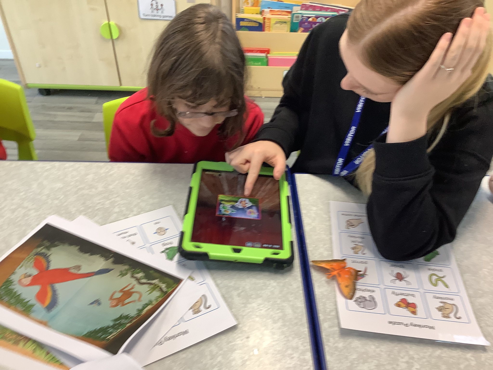 We have enjoyed a sensory story and used core-boards to comment on the story. We learned about the main characters and went on a character hunt.