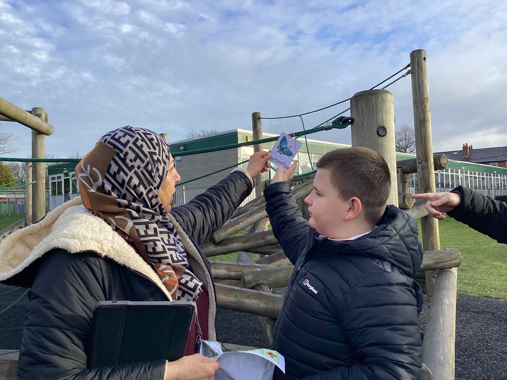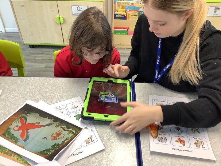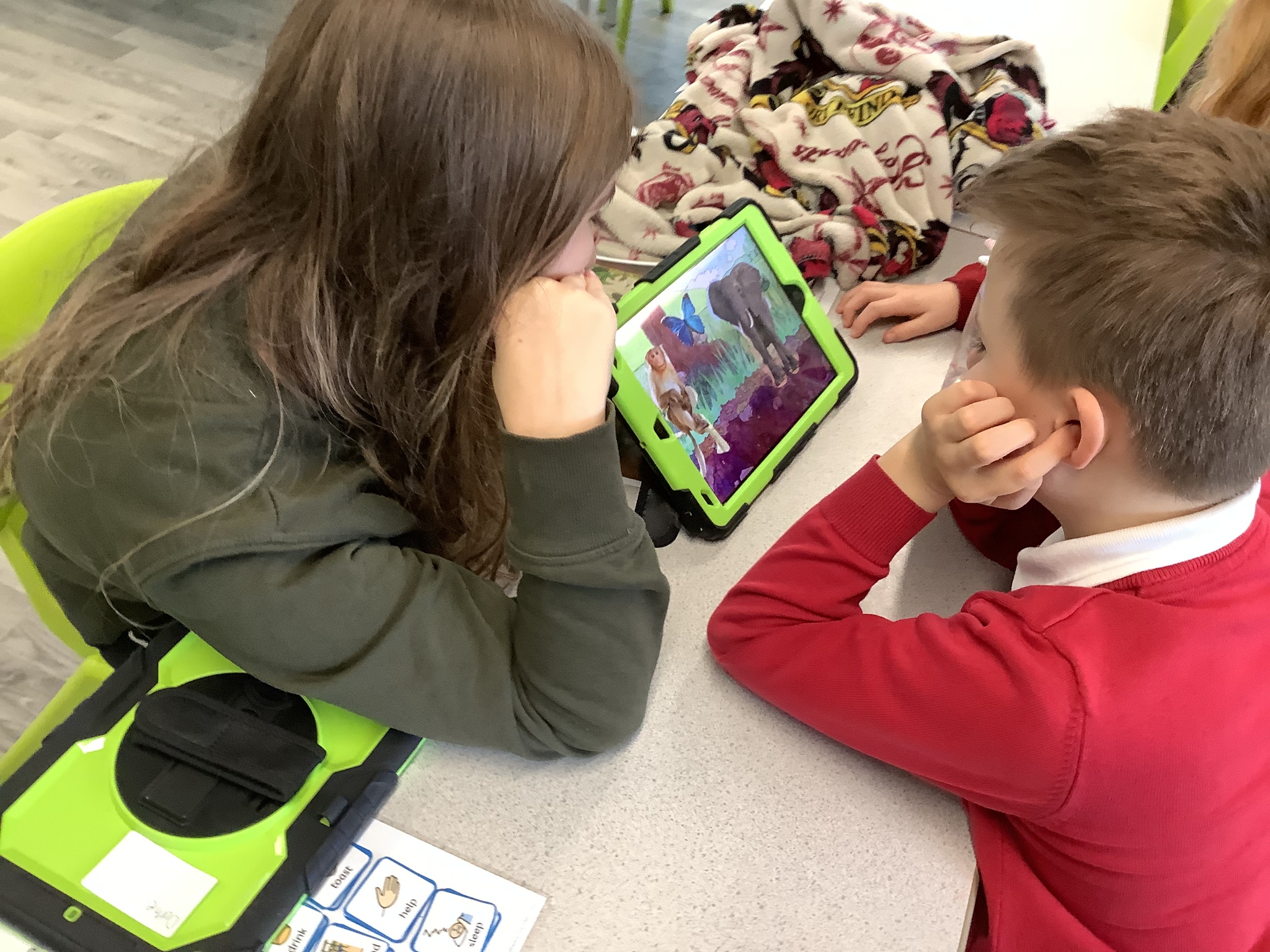 We have enjoyed a sensory story and used core-boards to comment on the story. We learned about the main characters and went on a character hunt.
