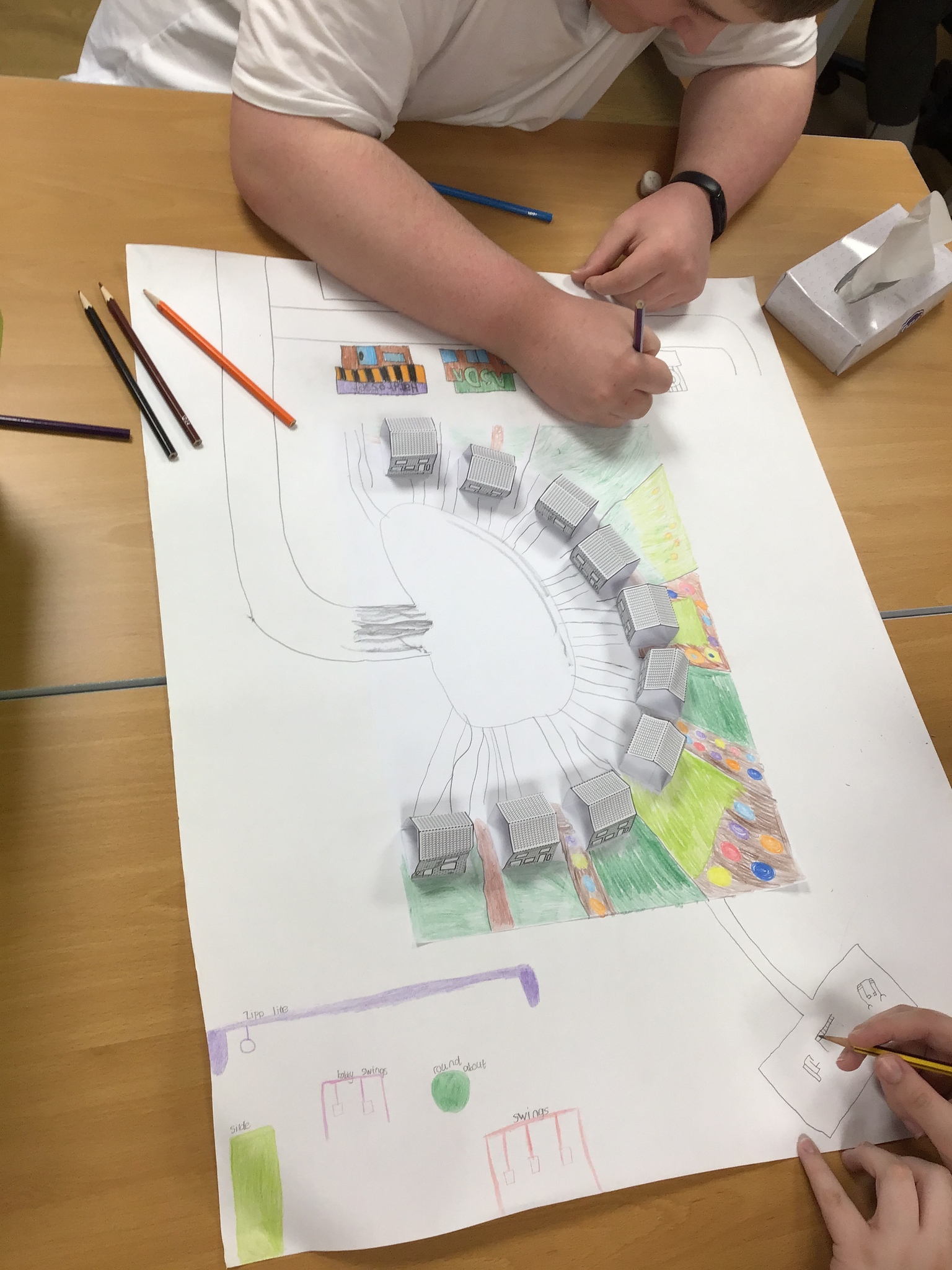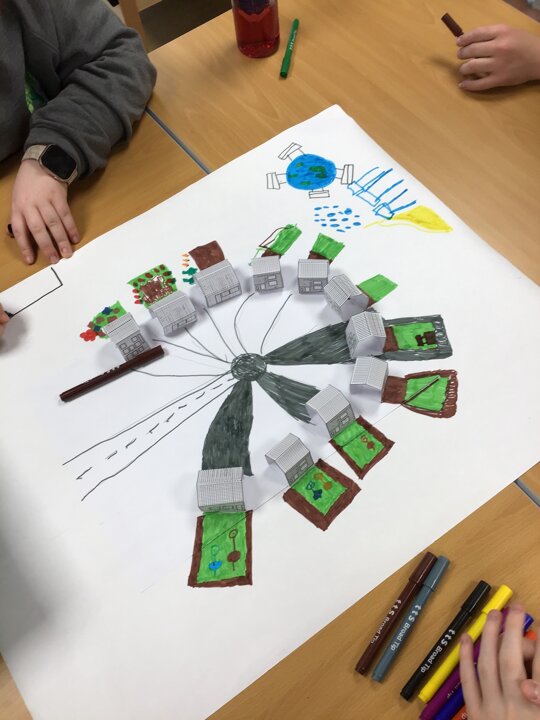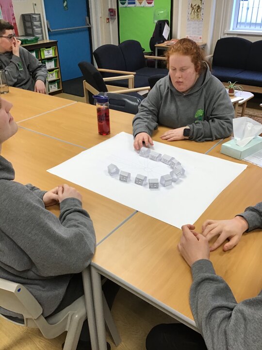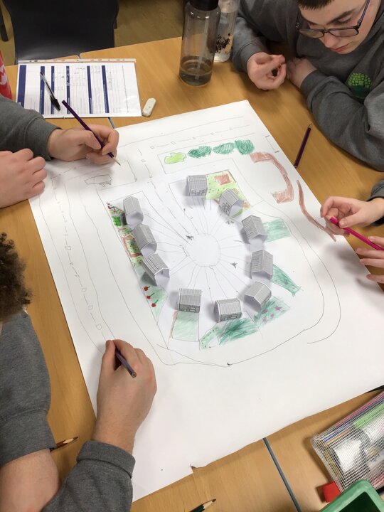 In the afternoon we had a visit from Julie from Keep Moat. She had a look at our designs for our housing estates. She was really impressed with the work we have put in so far. We carried on with our designs adding lots of amenities that a housing estate might need.