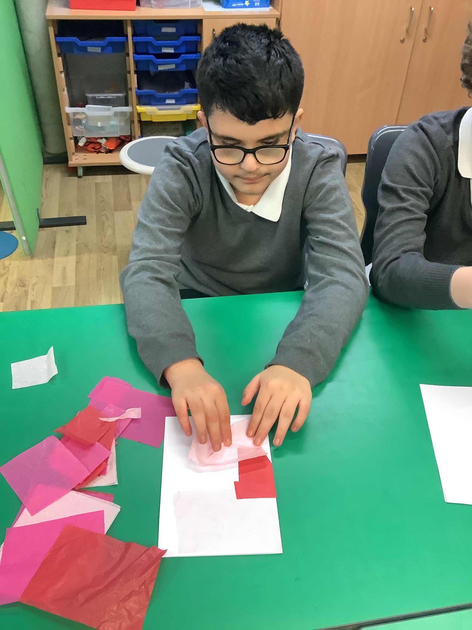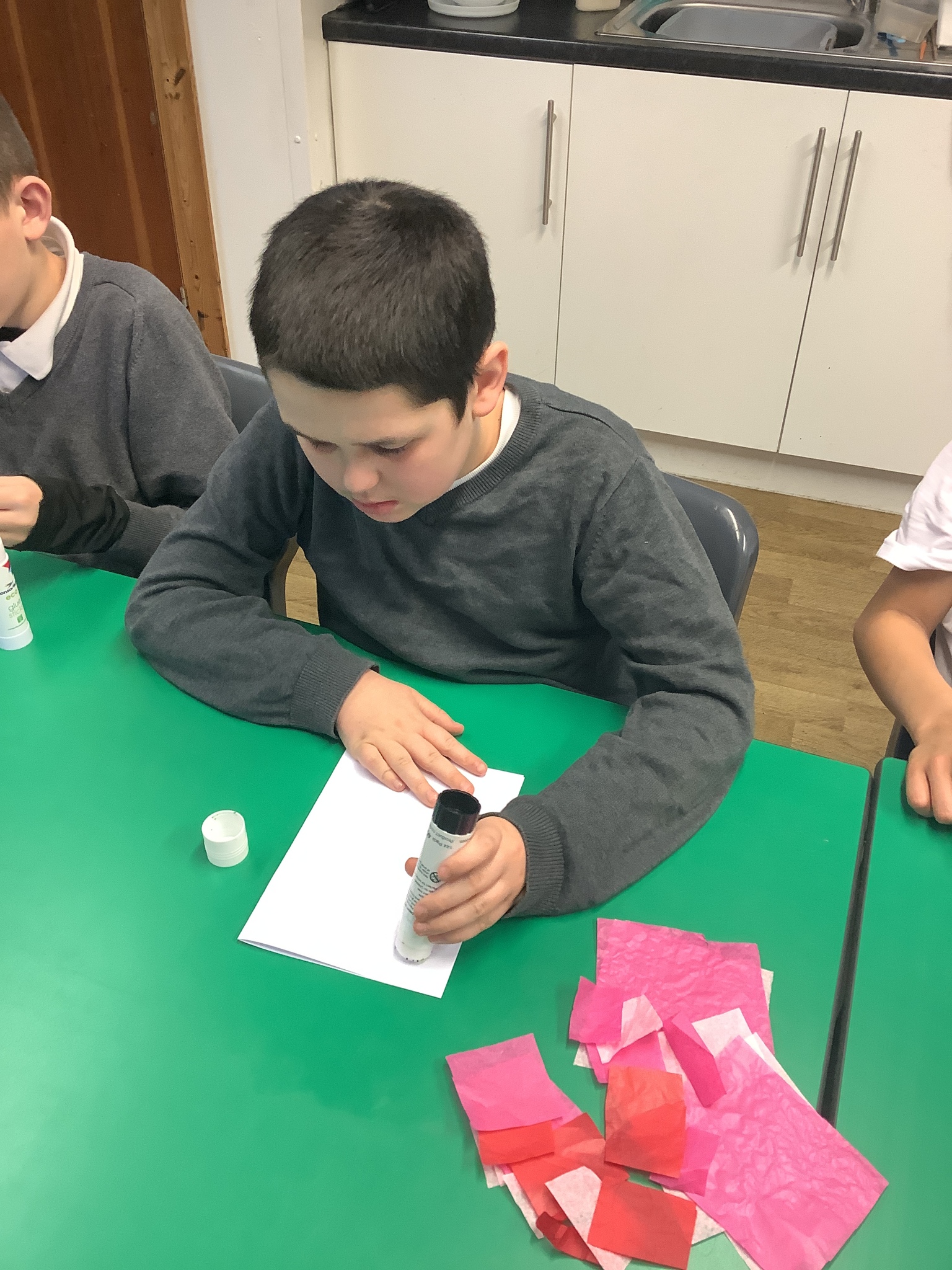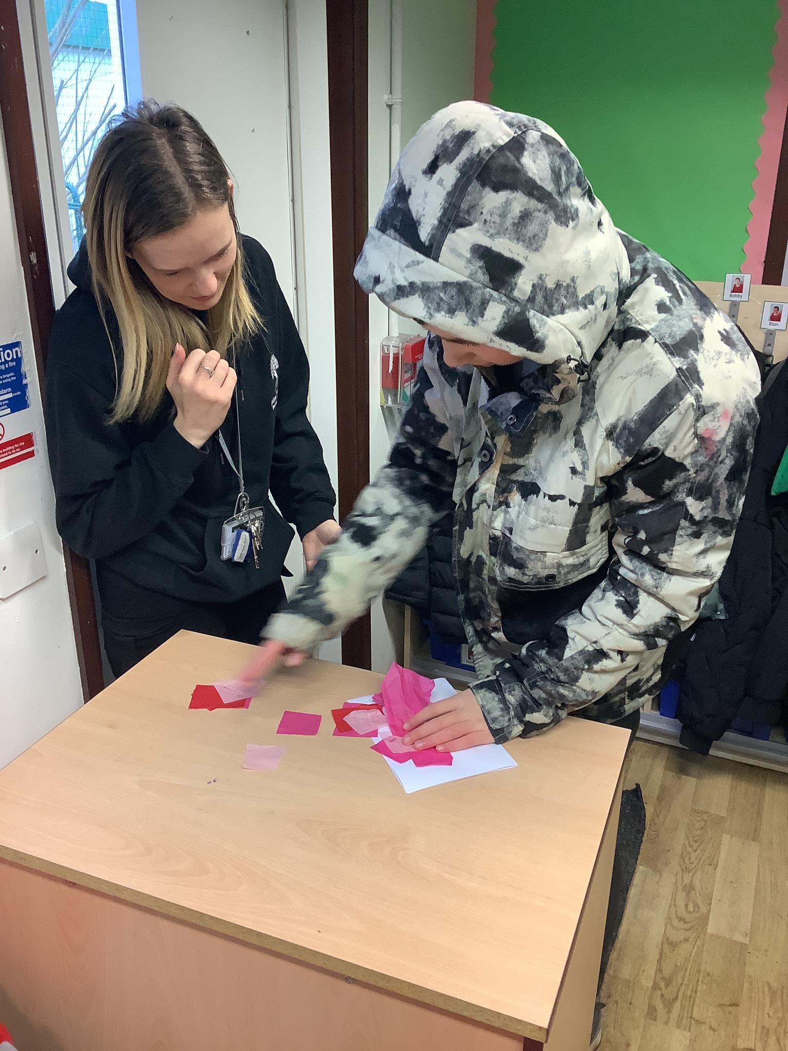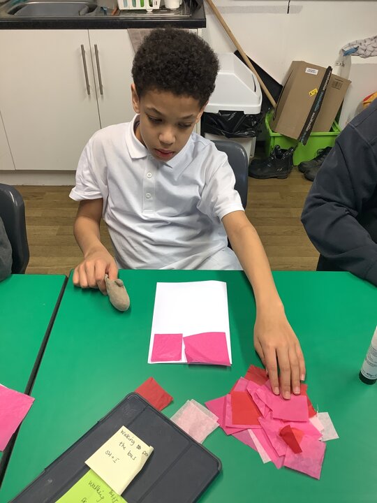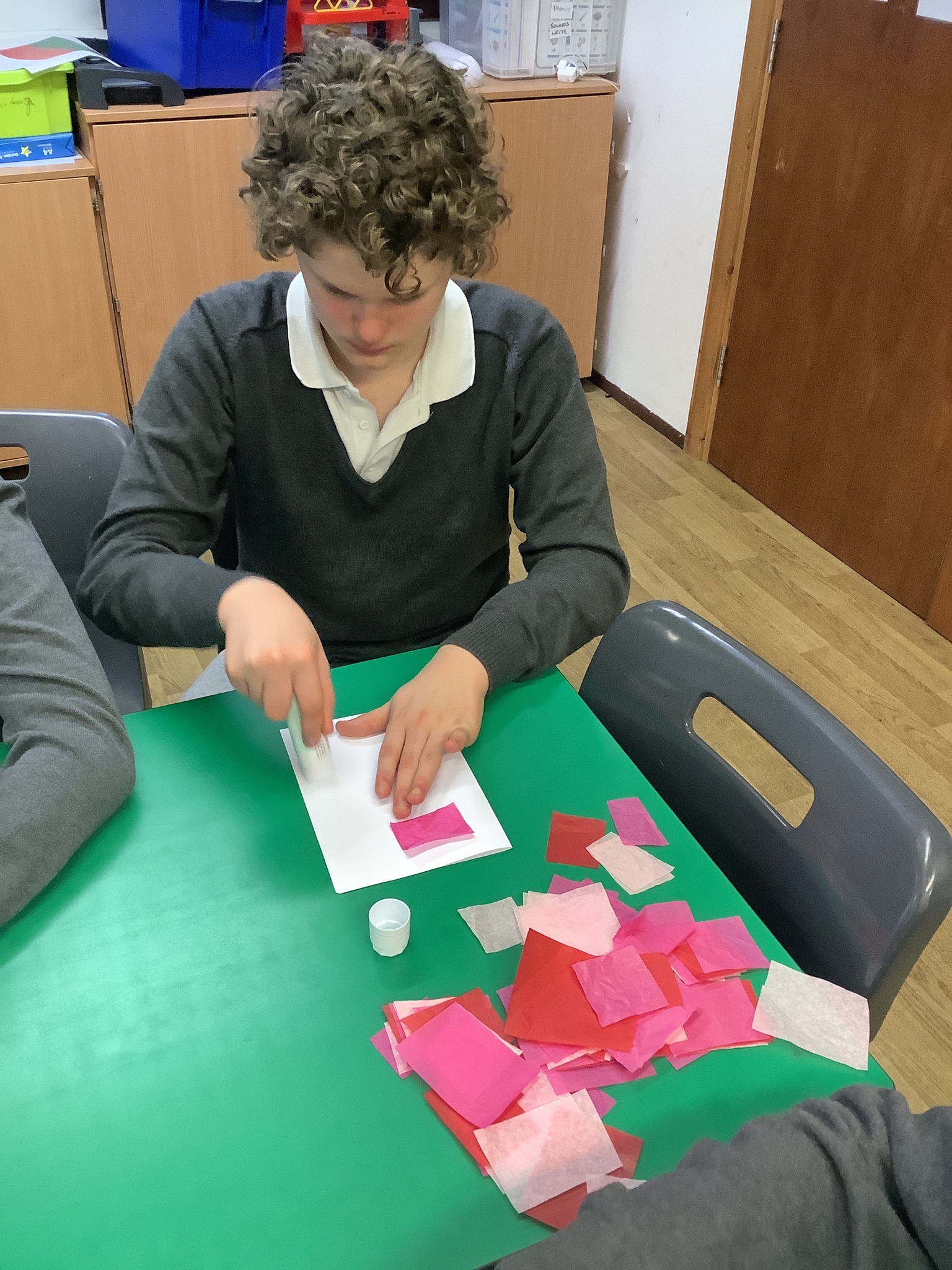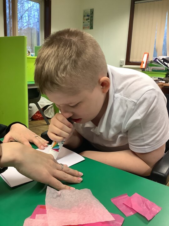 We spoke about Valentine’s Day, and who is special in our lives before settling down to make cards for those people. We took pieces of card, some glue and lots of tissue paper to create our cards before taking pictures of ourselves for the inside of the card. We wrote who our card was to and signed them as well.