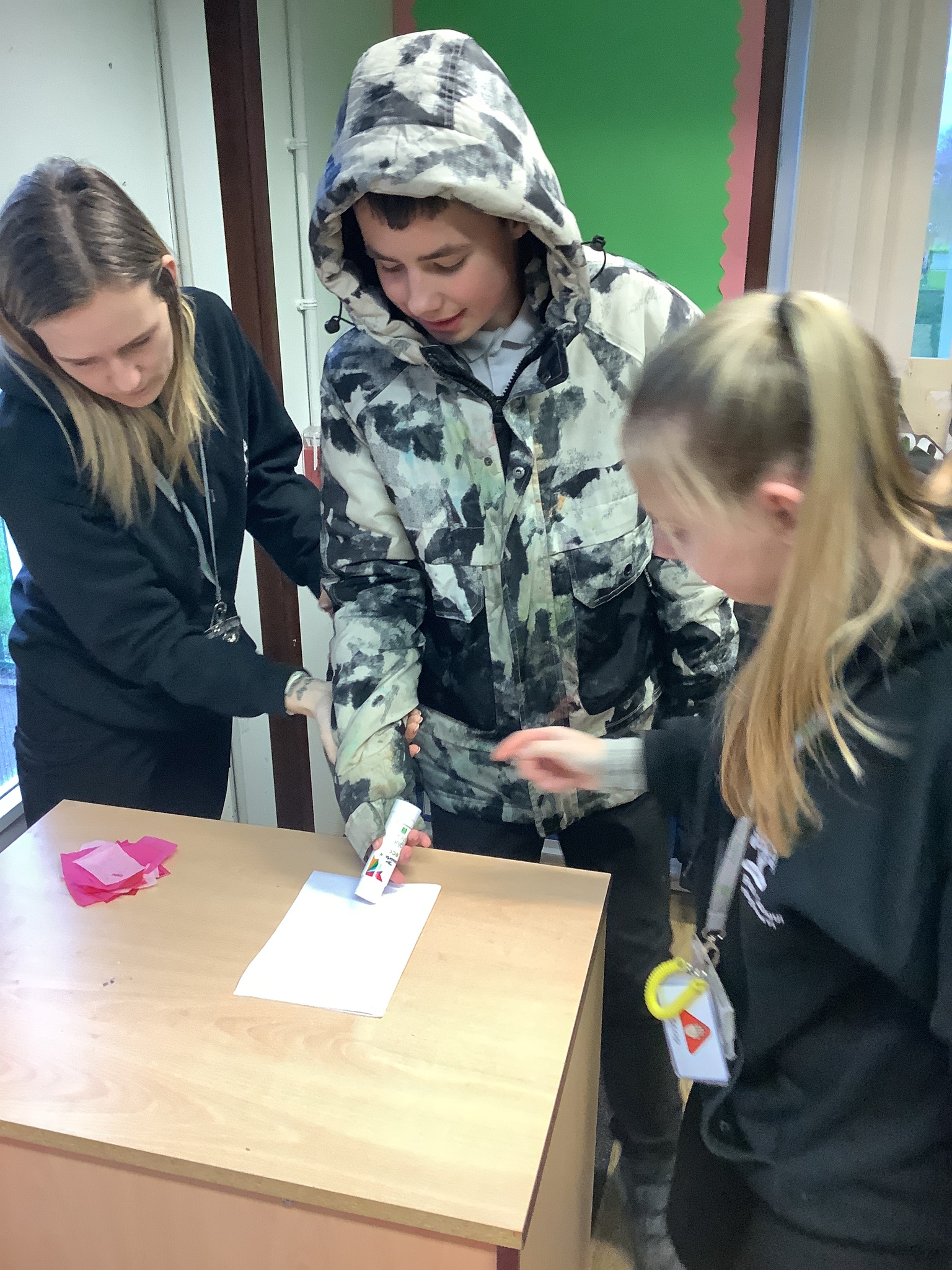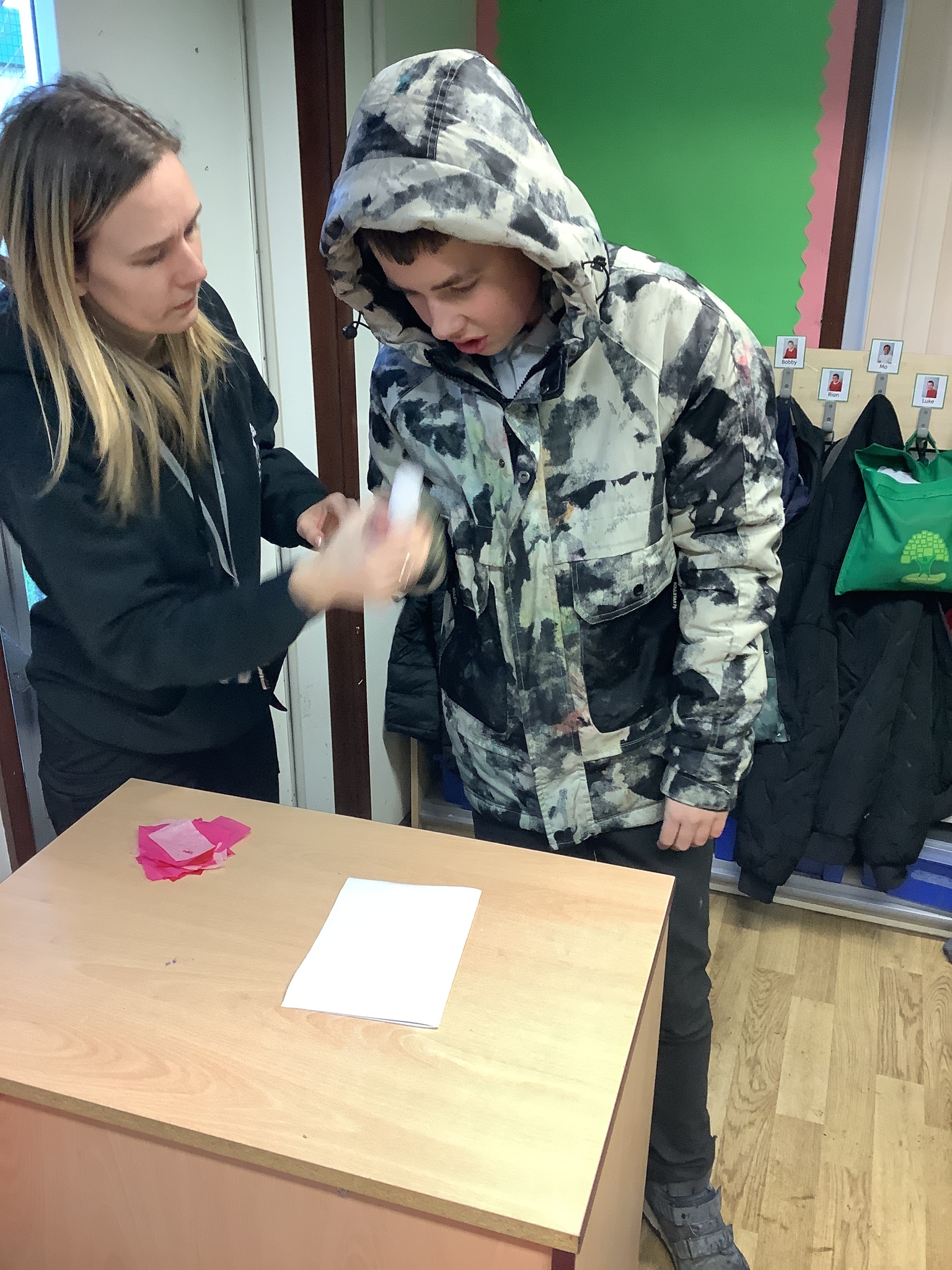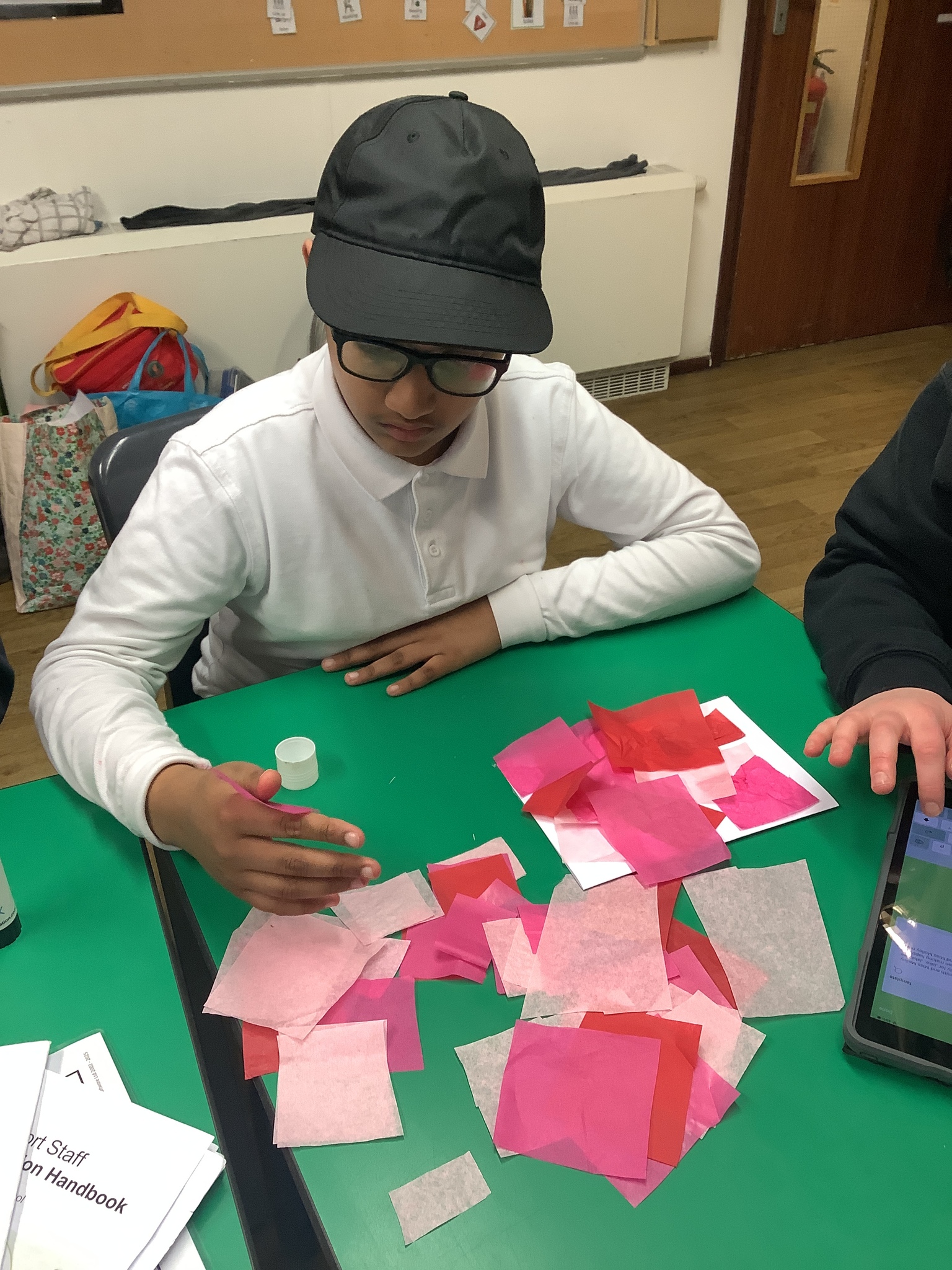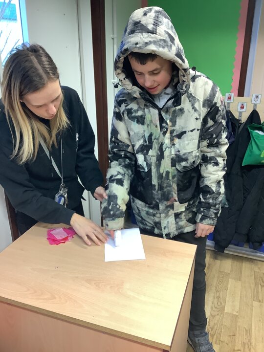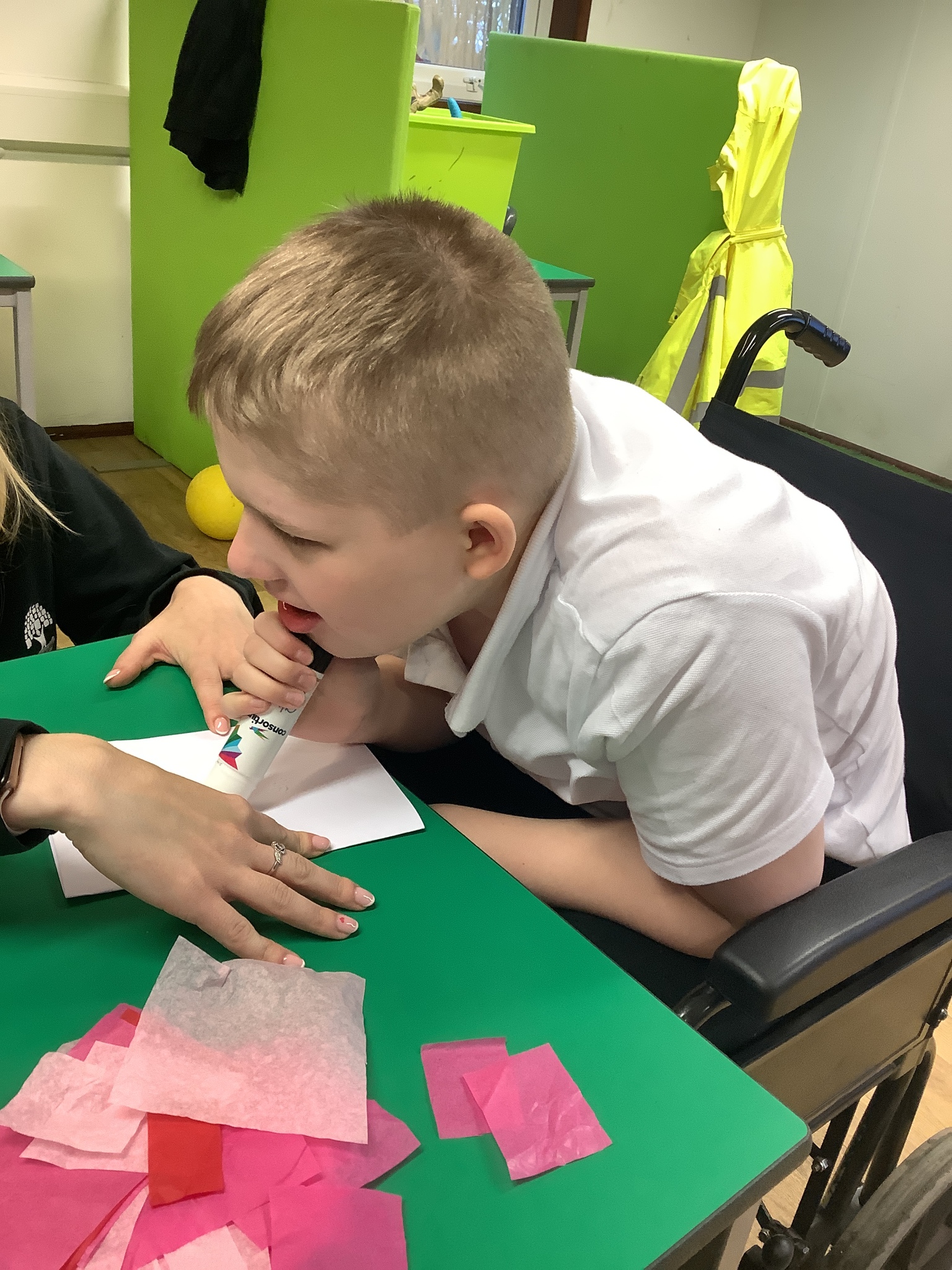 We spoke about Valentine’s Day, and who is special in our lives before settling down to make cards for those people. We took pieces of card, some glue and lots of tissue paper to create our cards before taking pictures of ourselves for the inside of the card. We wrote who our card was to and signed them as well.