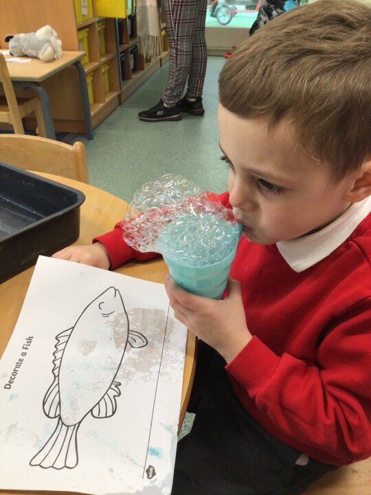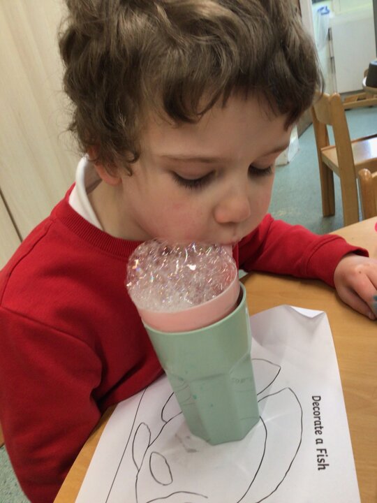 On Monday and Tuesday we continued to explore the beach. We made sand ‘cakes’, enjoyed a boat race, fished for sea creatures and blew bubbles to make marks on the fish.