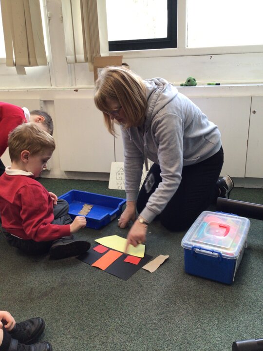 Throughout the rest of the week, we explored the town. We had a turn at making our own houses using junk models and paint, took turns at making a collage house and used the blocks and foam to build different buildings.