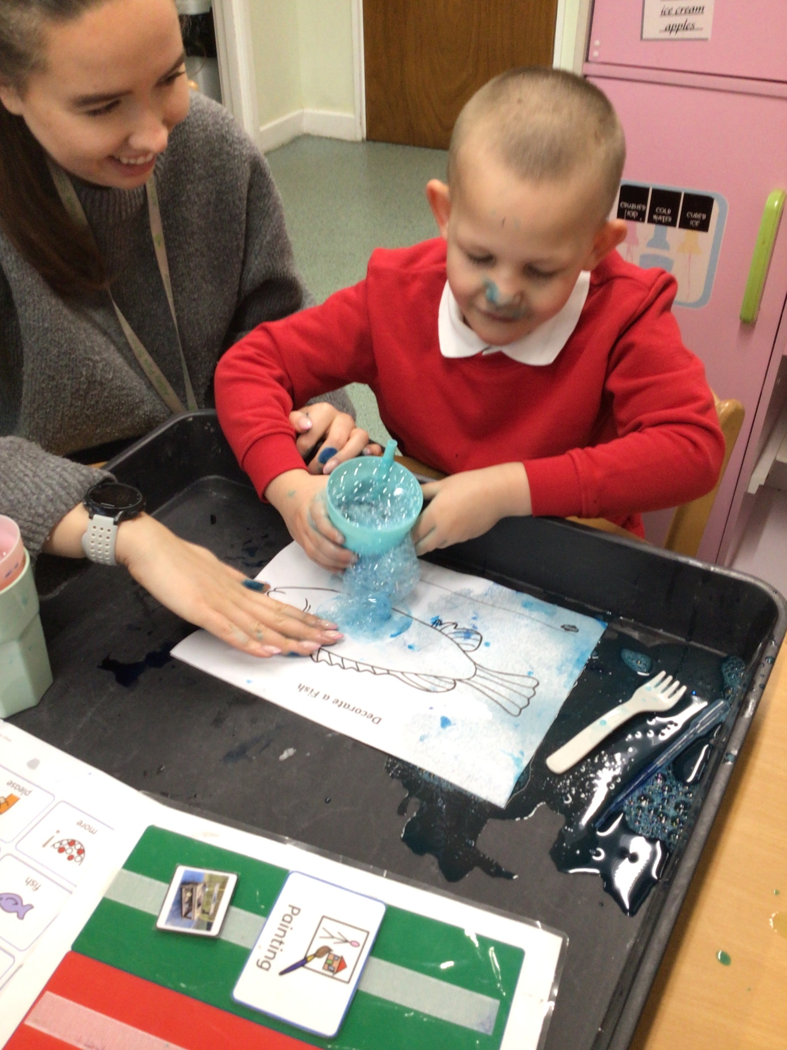 Our main focus this week has been, sense of self, communication and language and our social, emotional and mental health targets. To do this, we have all asserted our choices, followed personalised timetables to keep us motivated and engaged in lots of turn taking activities.