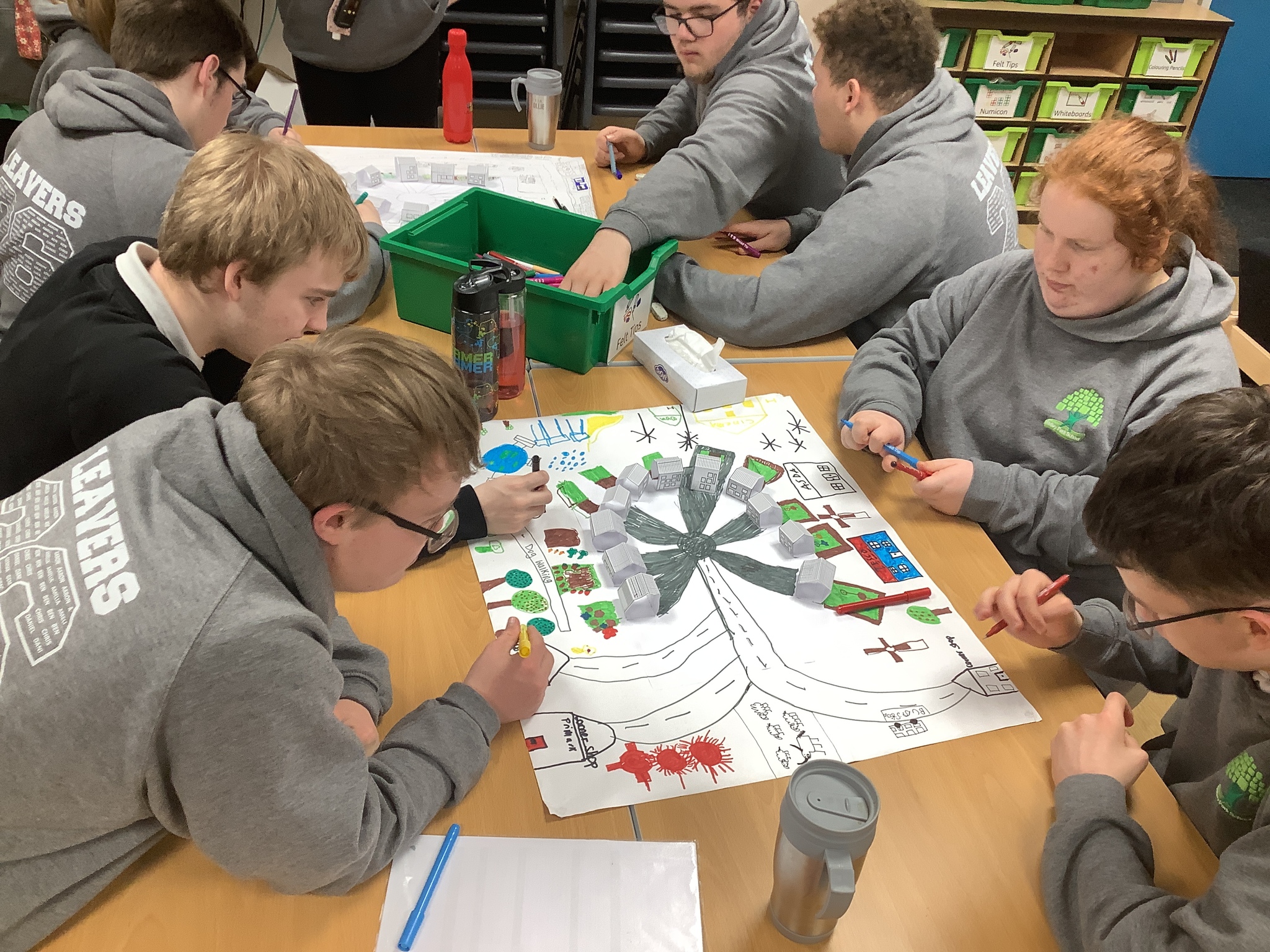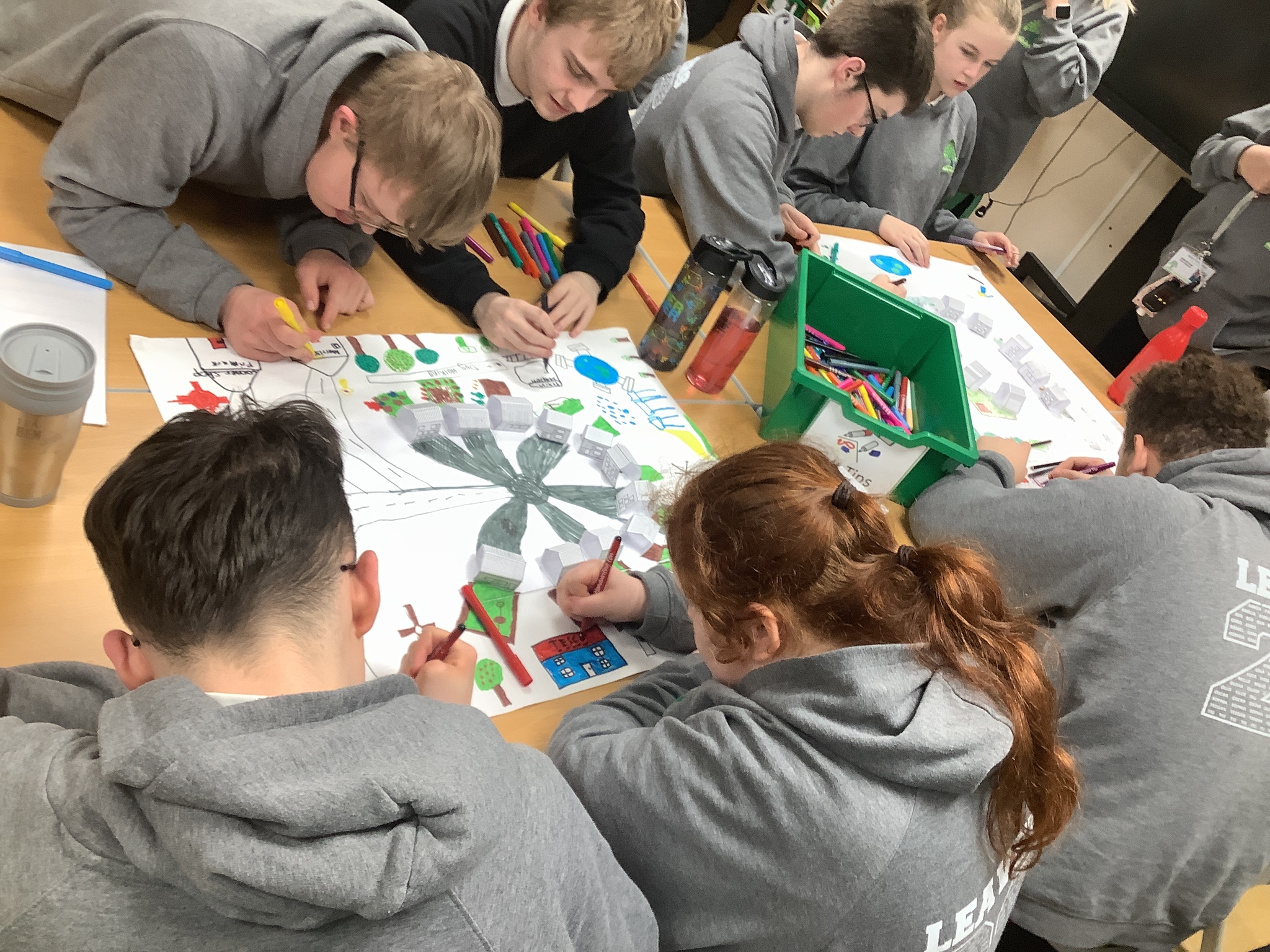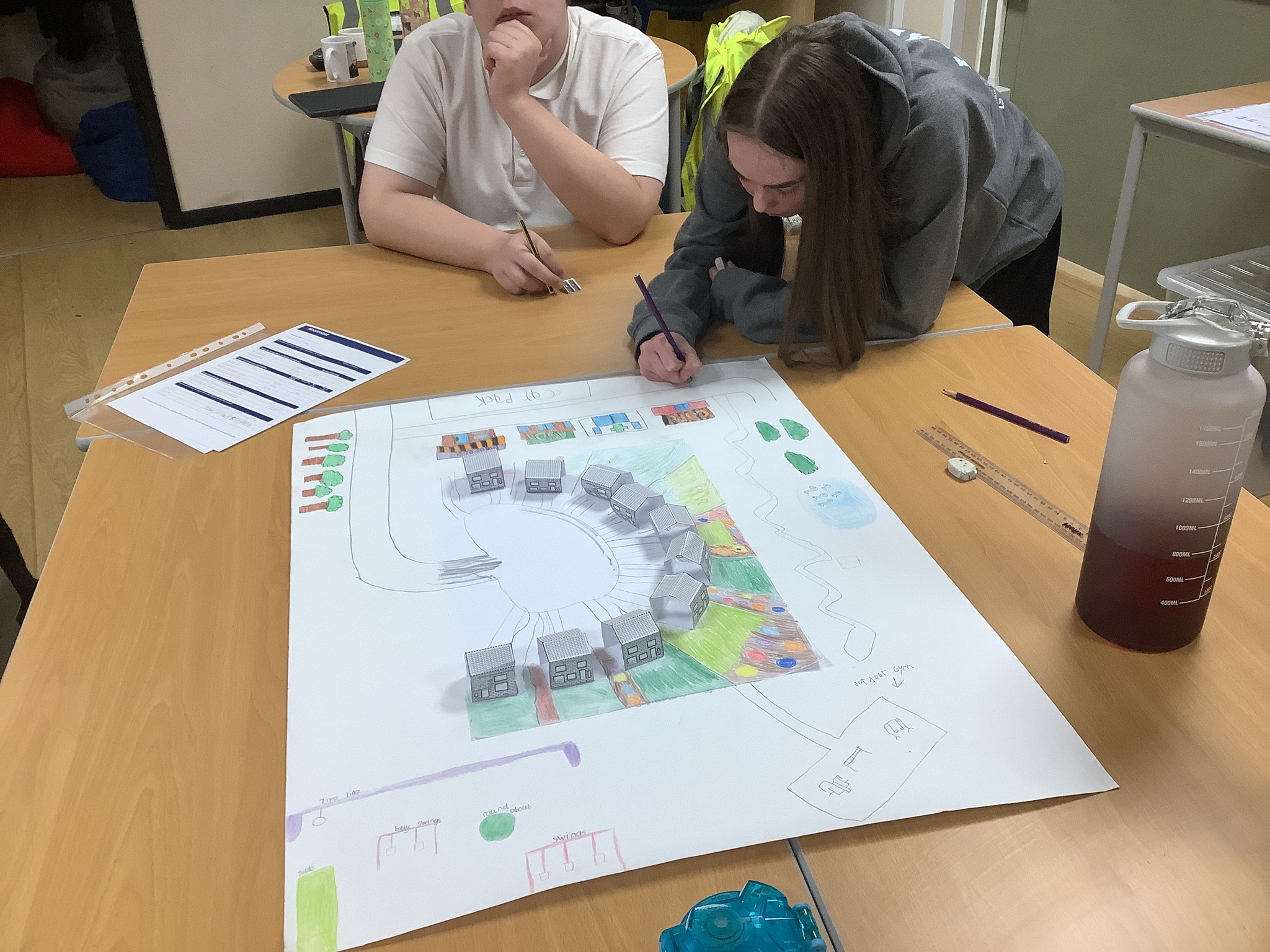 On Wednesday morning we continued working in our groups, completing maths. Then we continued to design our Keepmoat housing developments. Then in the afternoon, we helped prepare for the colour run, he filled all the bottles up with different colours.